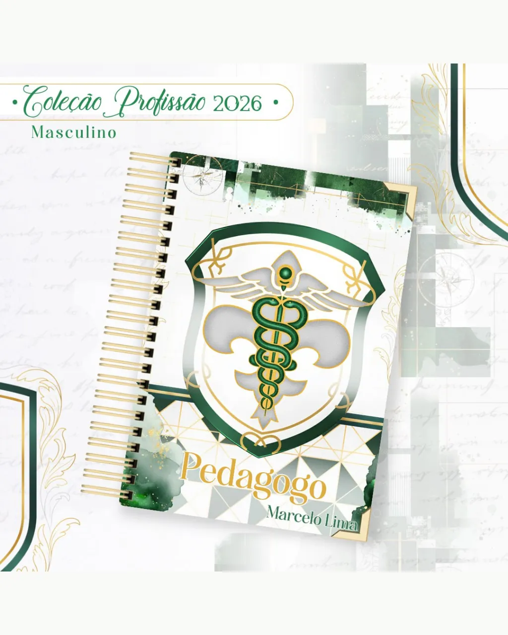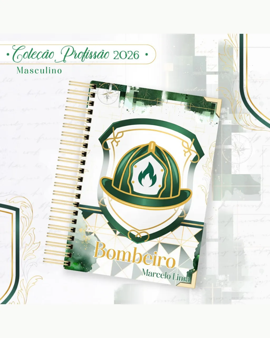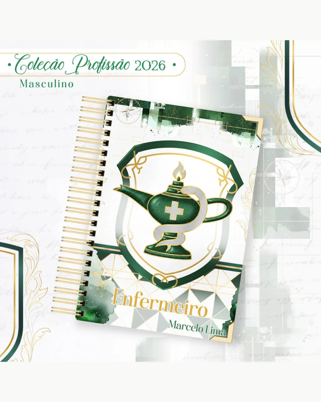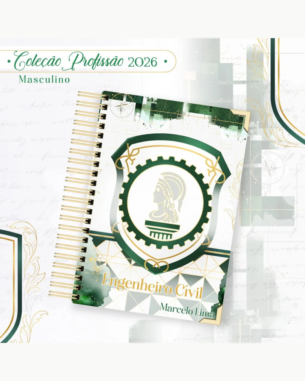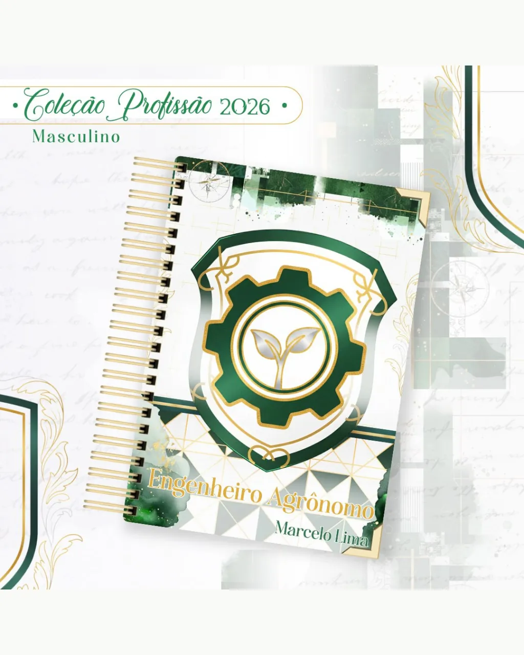 A Coleção Profissão 2026 Masculino Verde – Arquivos da Toke foi criada para valorizar e celebrar diferentes áreas profissionais com estilo e personalidade. A paleta verde transmite equilíbrio, modernidade e energia, tornando cada material versátil e marcante para agendas, lembrancinhas e kits personalizados.