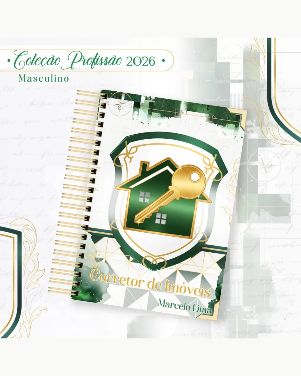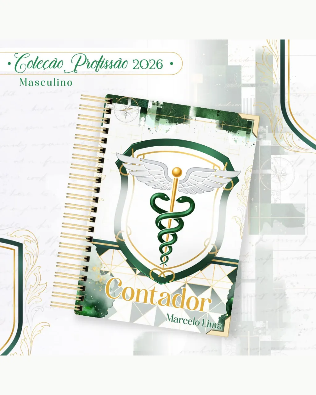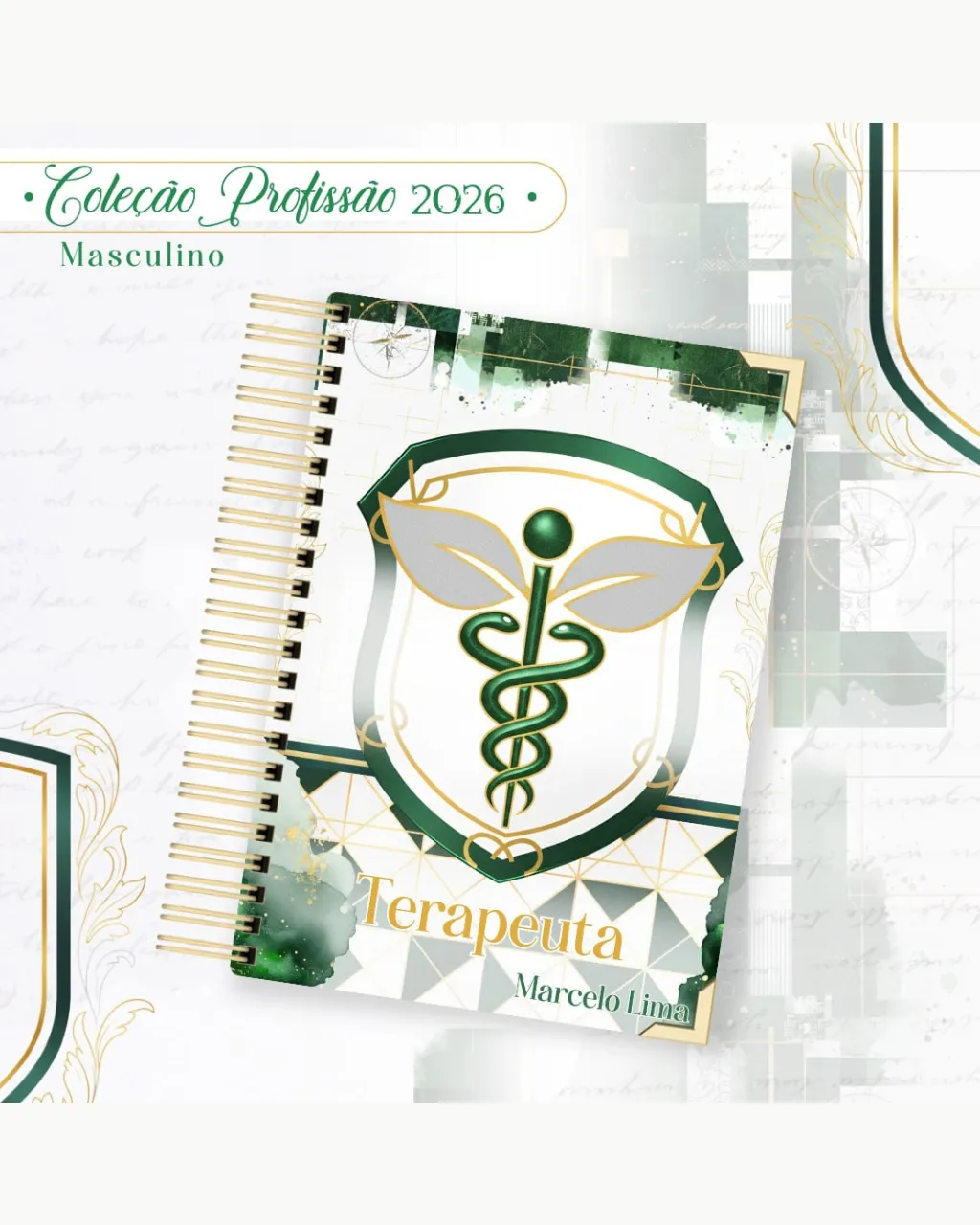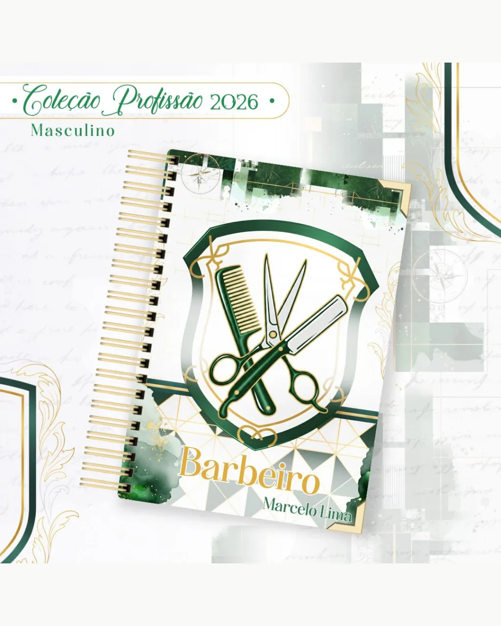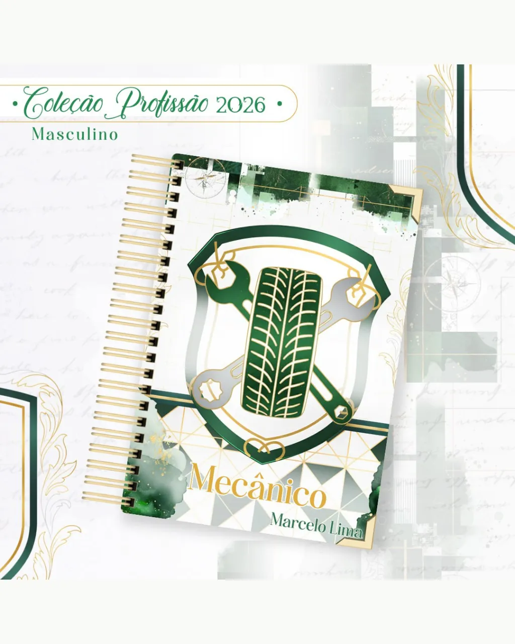A Coleção Profissão 2026 Masculino Verde – Arquivos da Toke foi criada para valorizar e celebrar diferentes áreas profissionais com estilo e personalidade. A paleta verde transmite equilíbrio, modernidade e energia, tornando cada material versátil e marcante para agendas, lembrancinhas e kits personalizados.