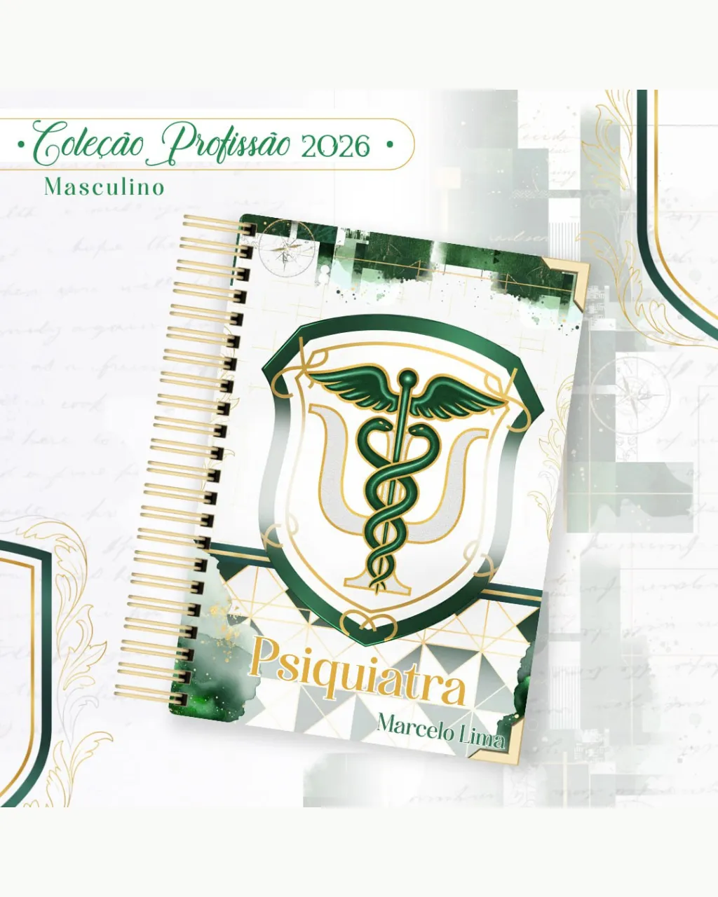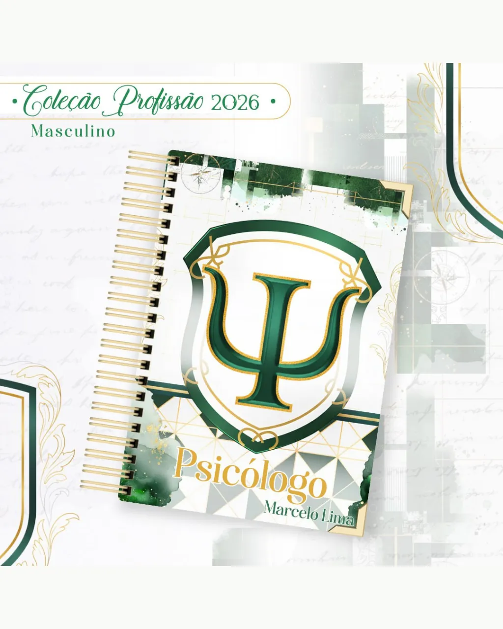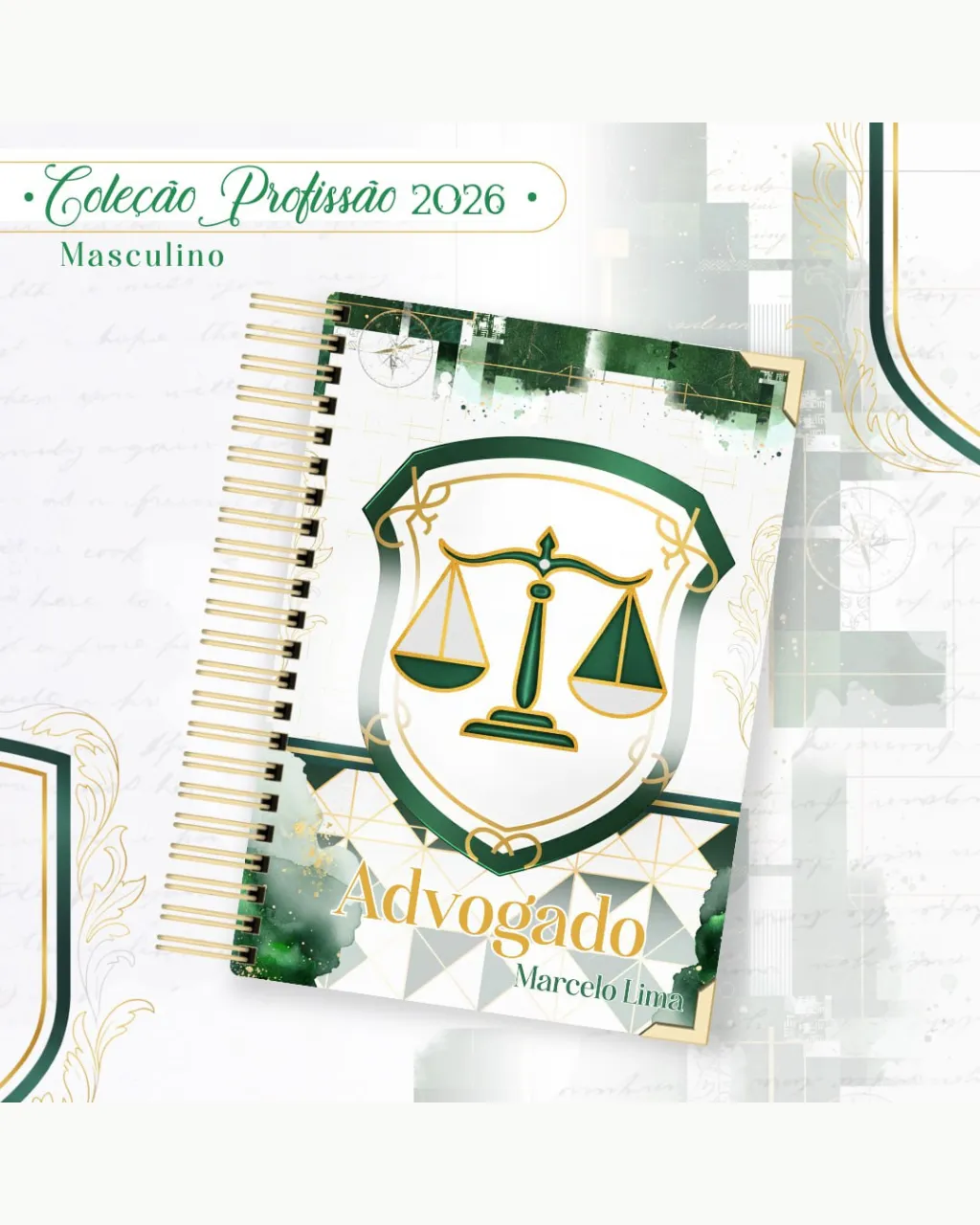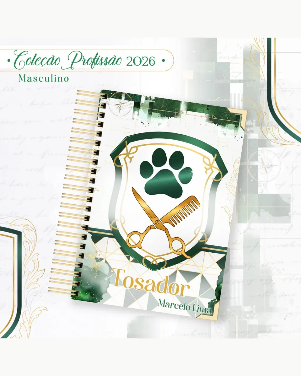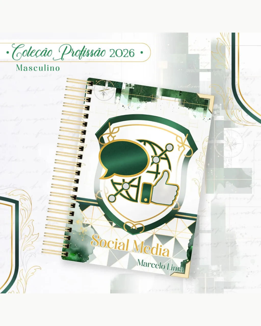 A Coleção Profissão 2026 Masculino Verde – Arquivos da Toke foi criada para valorizar e celebrar diferentes áreas profissionais com estilo e personalidade. A paleta verde transmite equilíbrio, modernidade e energia, tornando cada material versátil e marcante para agendas, lembrancinhas e kits personalizados.