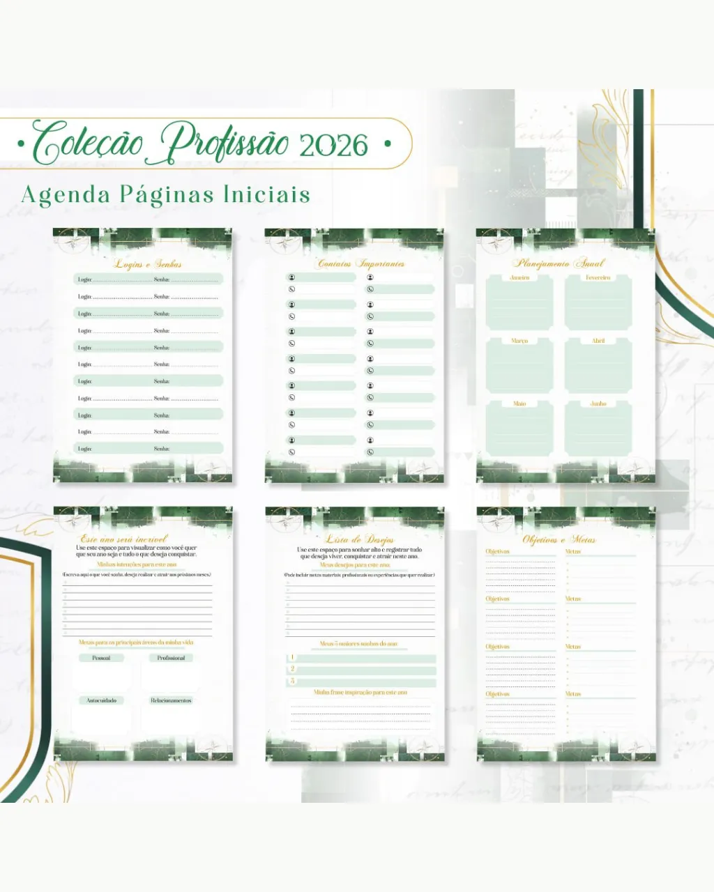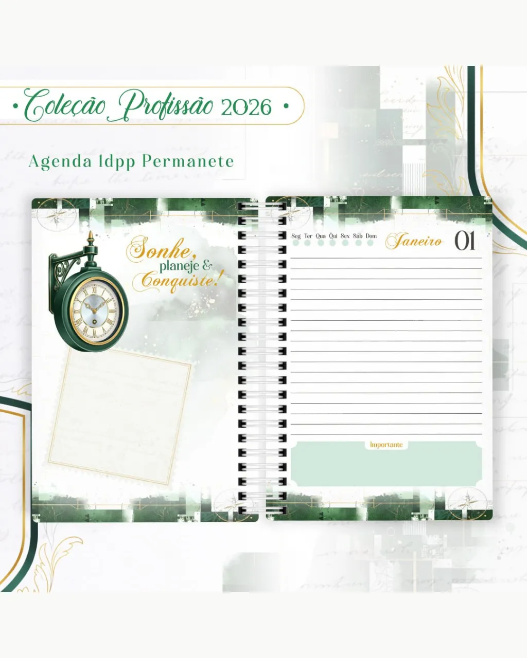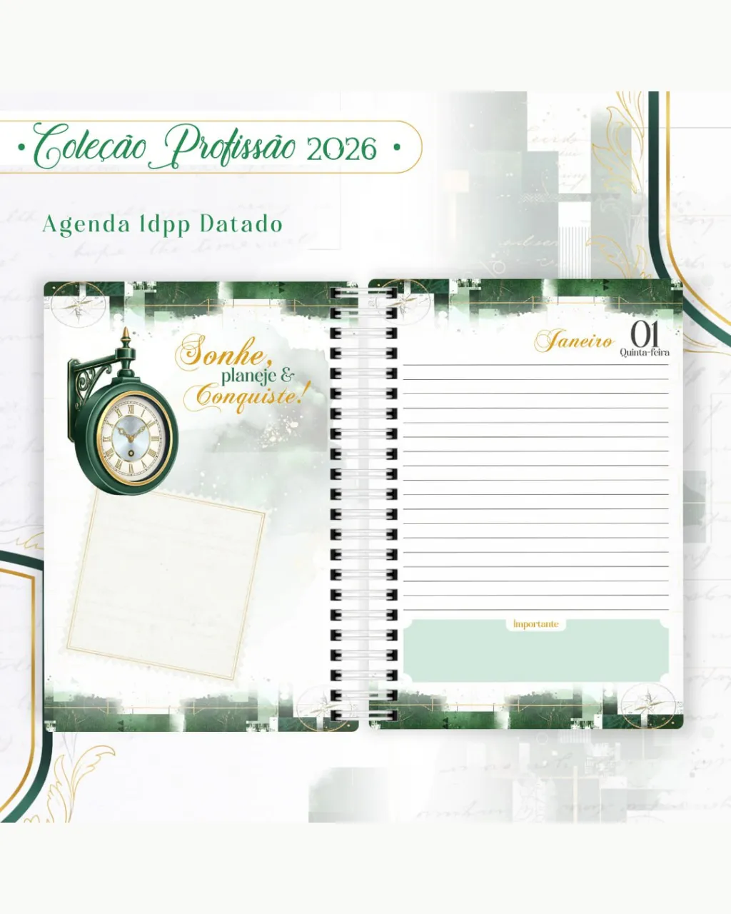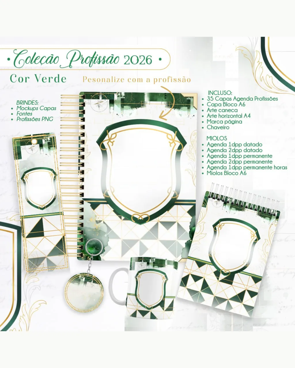 • Arquivos digitais exclusivos da coleção Profissão 2026 – Masculino Verde.
