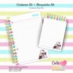 🌸 Caderno A5 + Bloco A6 + Pack Papelaria Fofa(Blocos nos tamanhos 14x20cm ; 10x14cm e 95x95cm)