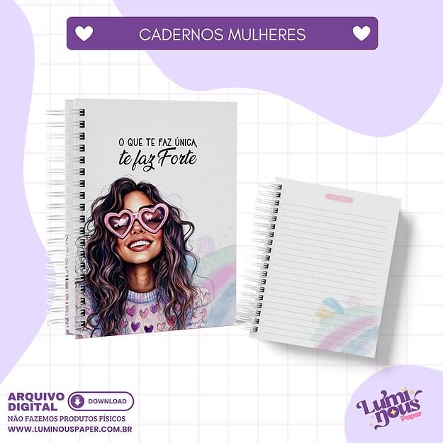 (as contracapas são iguais as capas, porém invertidas, ou seja, o caderno ficará com a imagem da mulher na frente e atrás)
