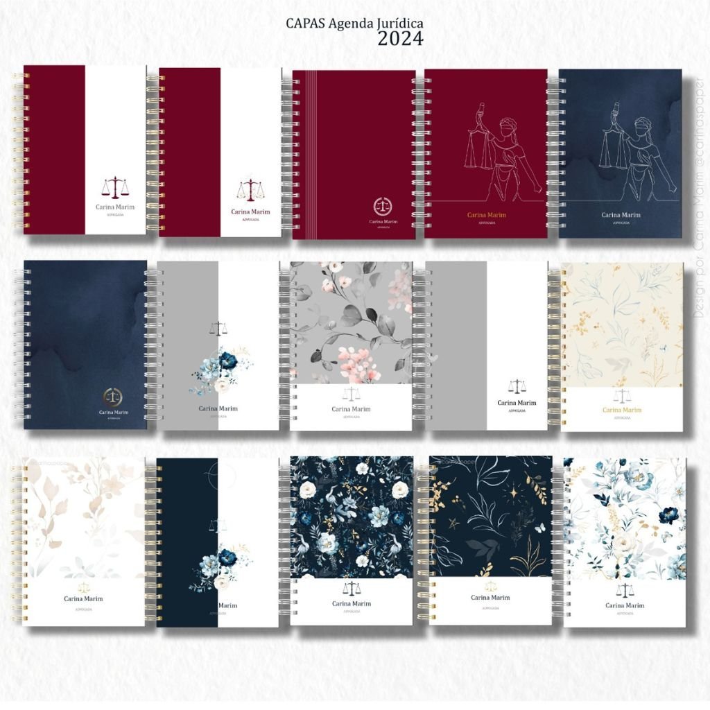 As capas são enviadas sem texto e com os símbolos que representam a área Jurídica na capa prontas para impressão.