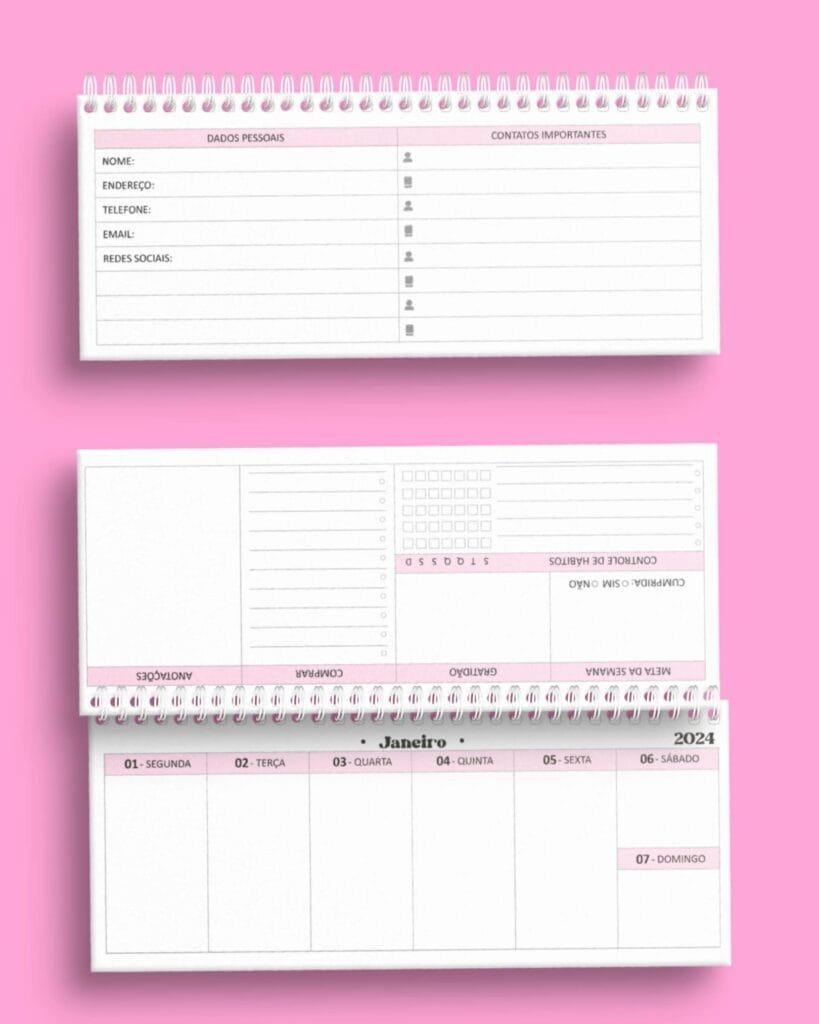 Arquivo Combo 8 arquivos Desk Planner Semanal Permanente e Datado 2024