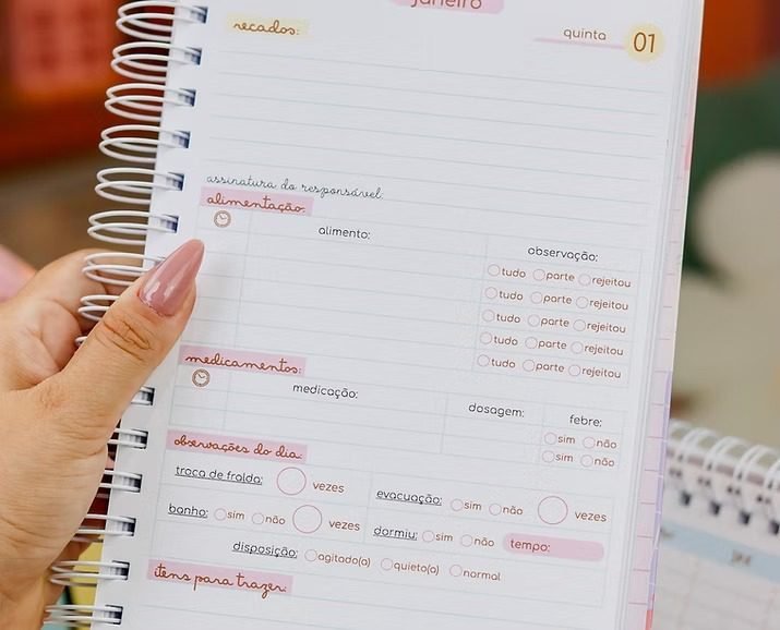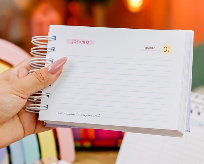 • Cada página possui espaço para preencher dia, mês e dia da semana;