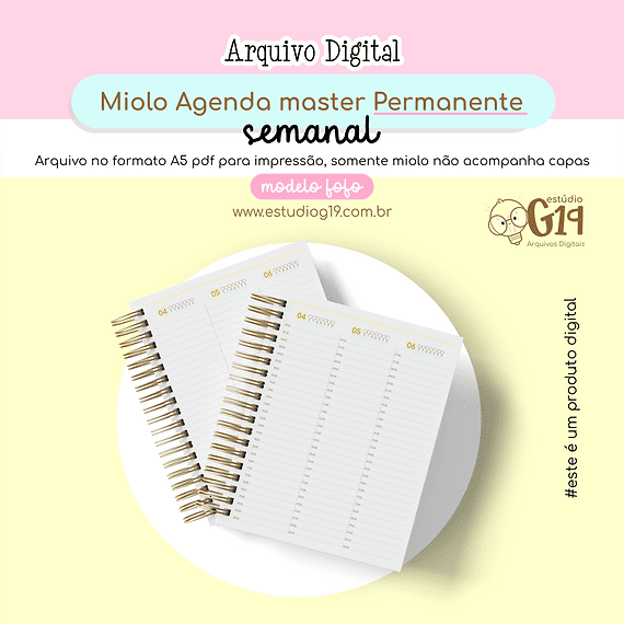 Combo Agendas Permanentes A5 | Master Semanal (Estúdio G19)
