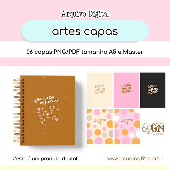 nArquivo capas prontas para impressão com 06 modelos, png e pdf, mockups, fotos, papeis para guarda e bolsinho (tamanhos A5 15,5 x 21,5 e 17,5 x 23,5)
