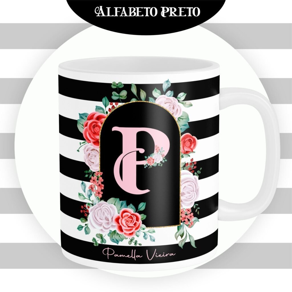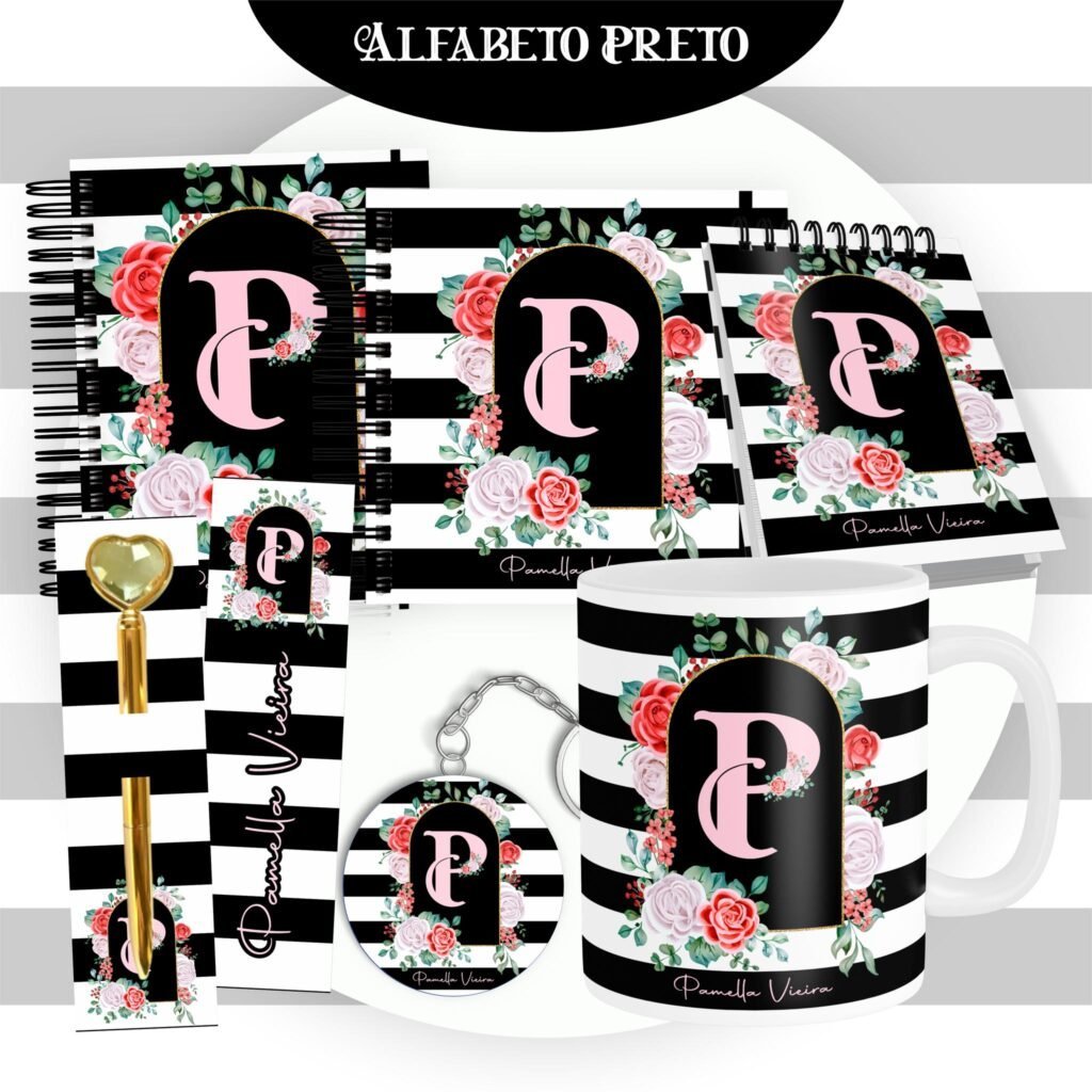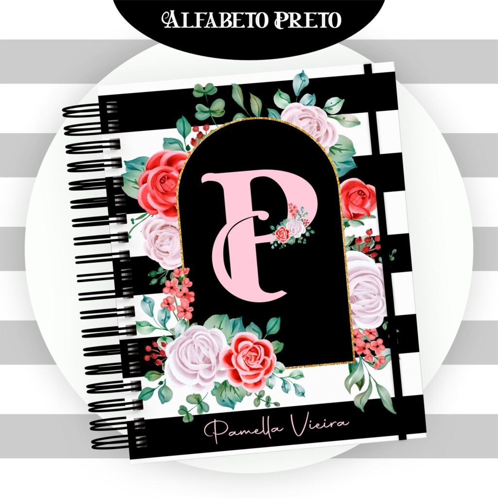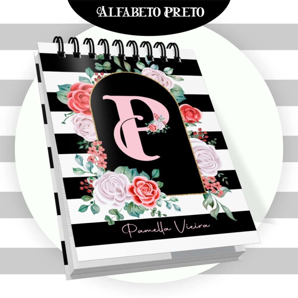 Combo Alfabeto Floral Preto – Encadernação (Pamella)