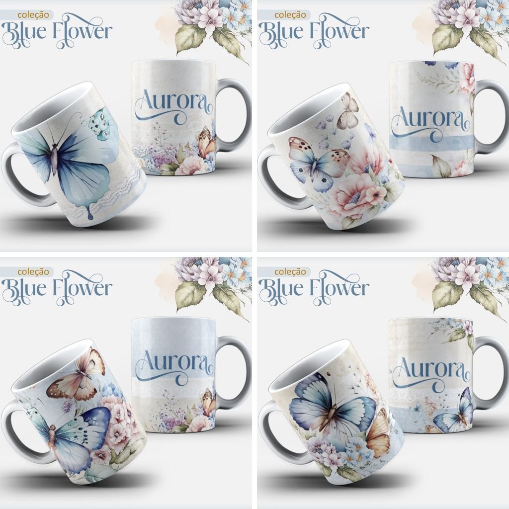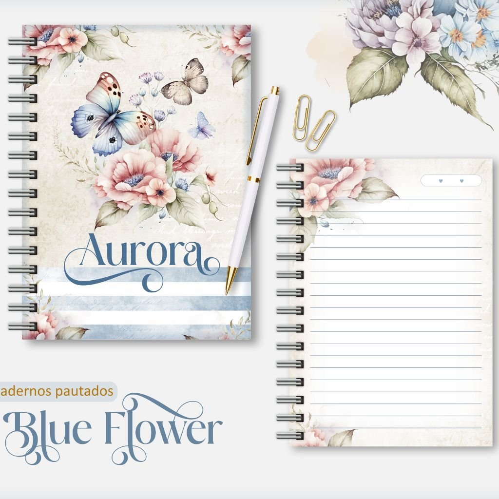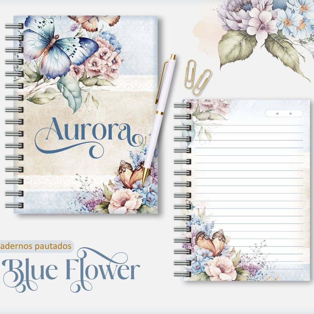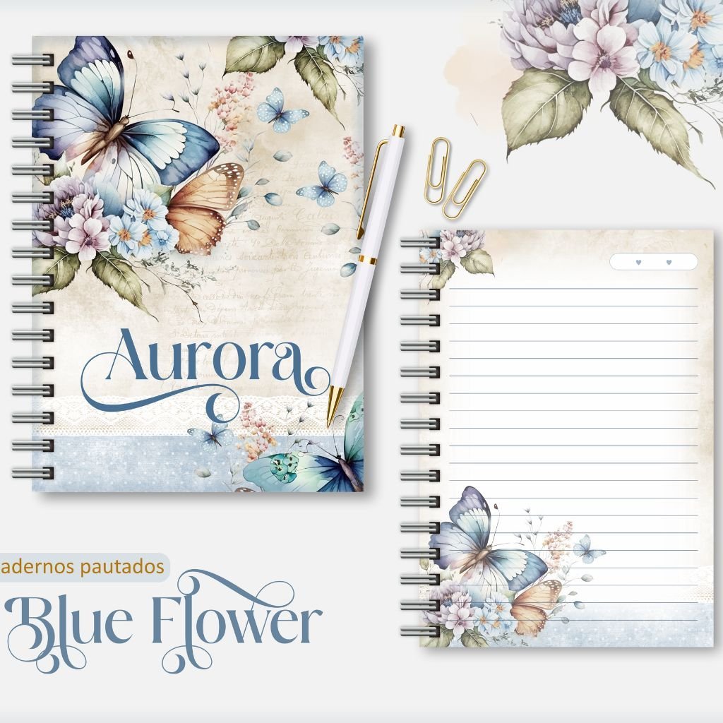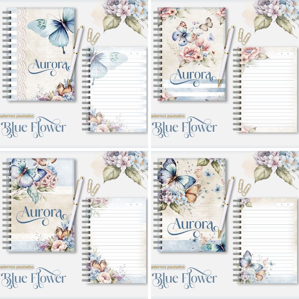 Combo Cadernos – Blue Flower – 4 Modelos (Lina)