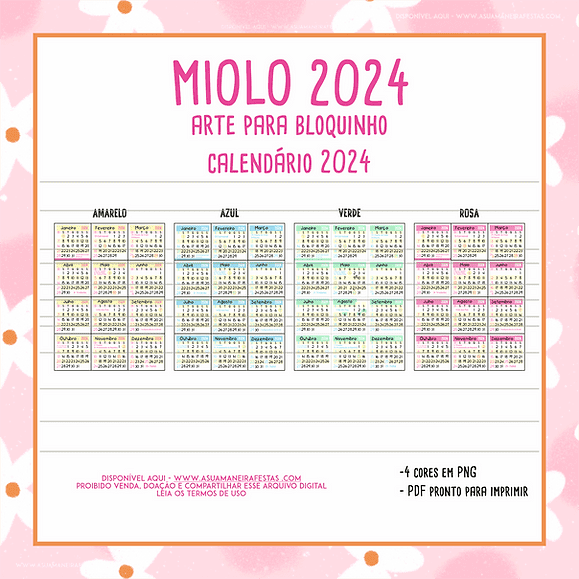 - 48 artes Miolo Calendário – 2024 (4 modelos de cor)