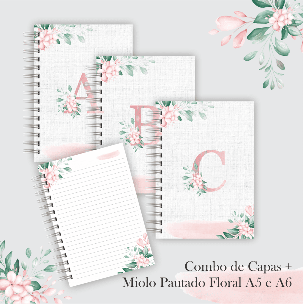 Combo de Capas Florais Alfabeto Fundo Claro (Marta Iuki)