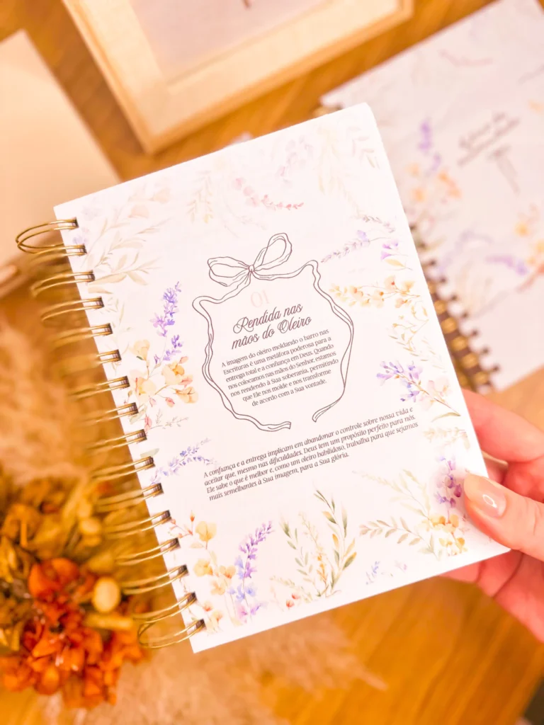 Este diário traz em suas 224 páginas uma jornada guiada de 6 meses em rendição à obra transformadora de Deus. É um companheiro de caminhada espiritual, guiando o coração a se conectar com a presença amorosa do Senhor e a trilhar um caminho de fé e renovação.