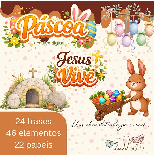 Ideal para criar lembrancinhas, papelaria personalizada e projetos especiais de Páscoa.