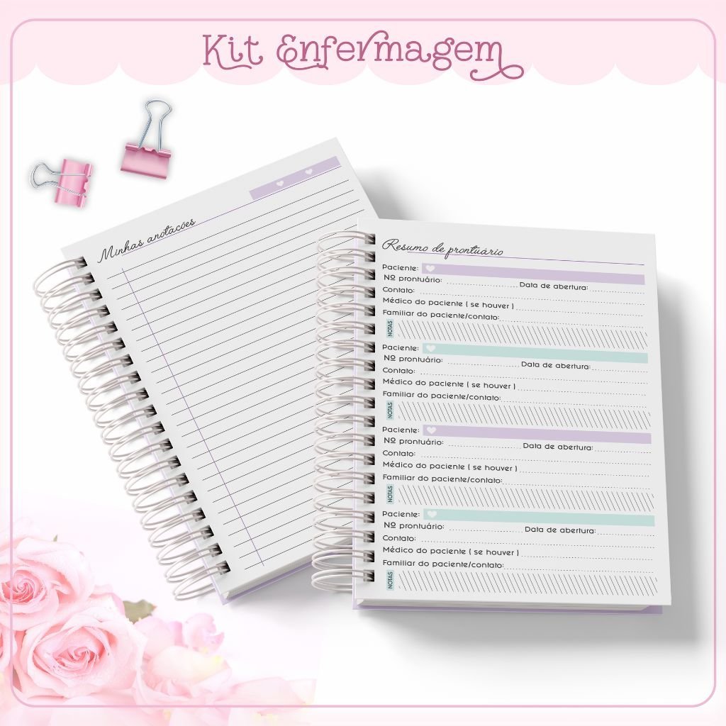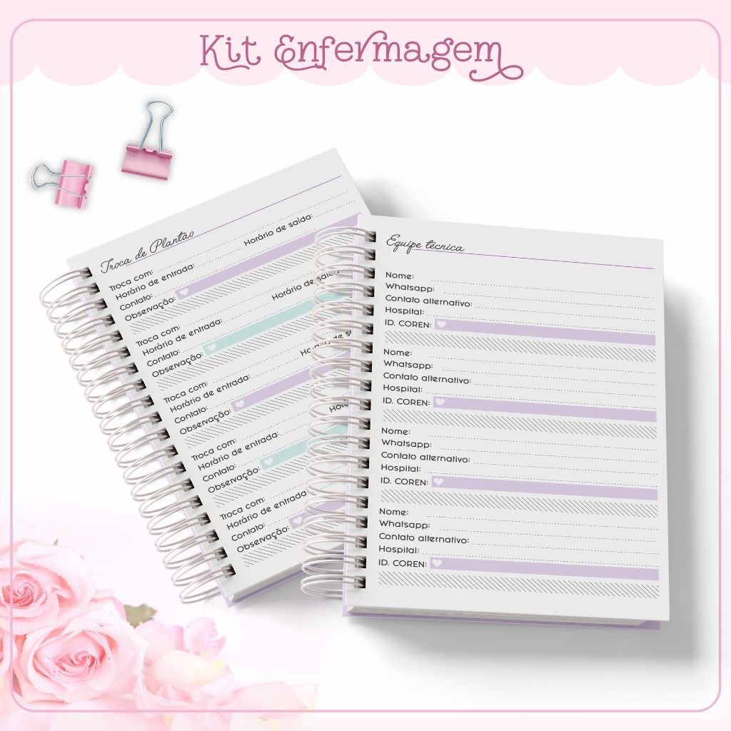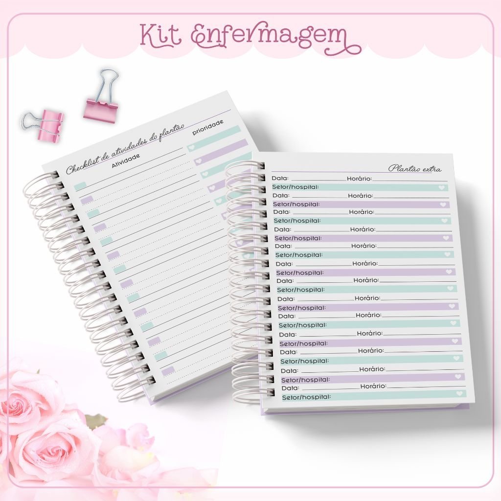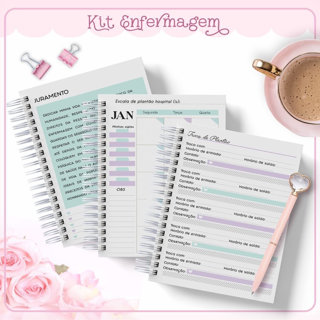 Miolo Agenda Enfermagem em PDF (Folhas Escala de Plantão, Resumo do Plantão e Páginas 1 DPP Permanente)