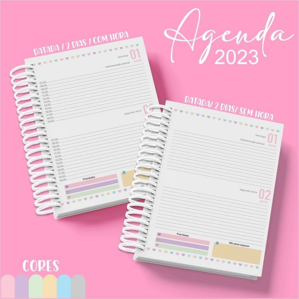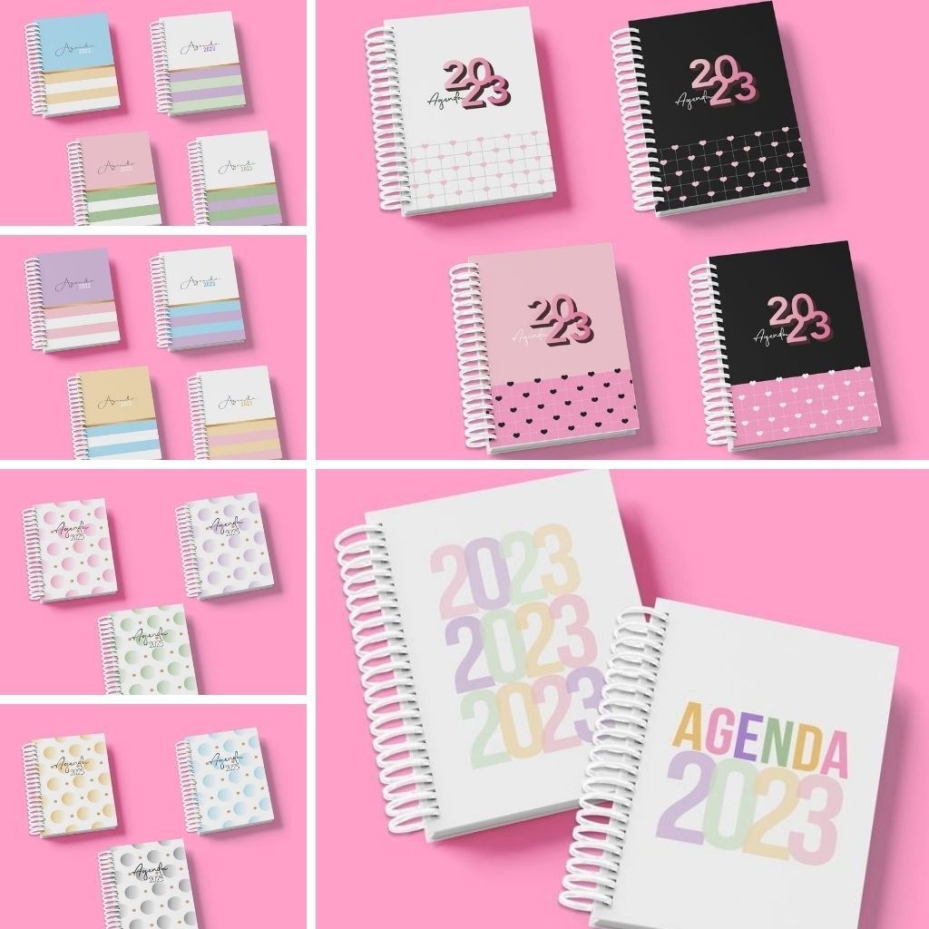 Combo com arquivos de Agendas com variação de cores dos miolos A5 (Azul, Lilás, Cinza, Colorida, Mostarda, Rosa e Verde)