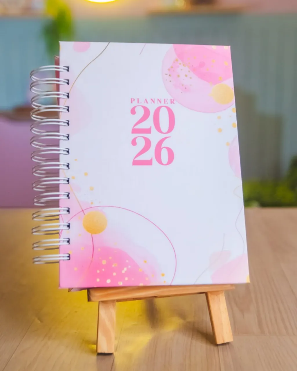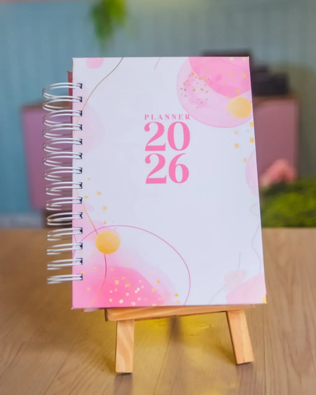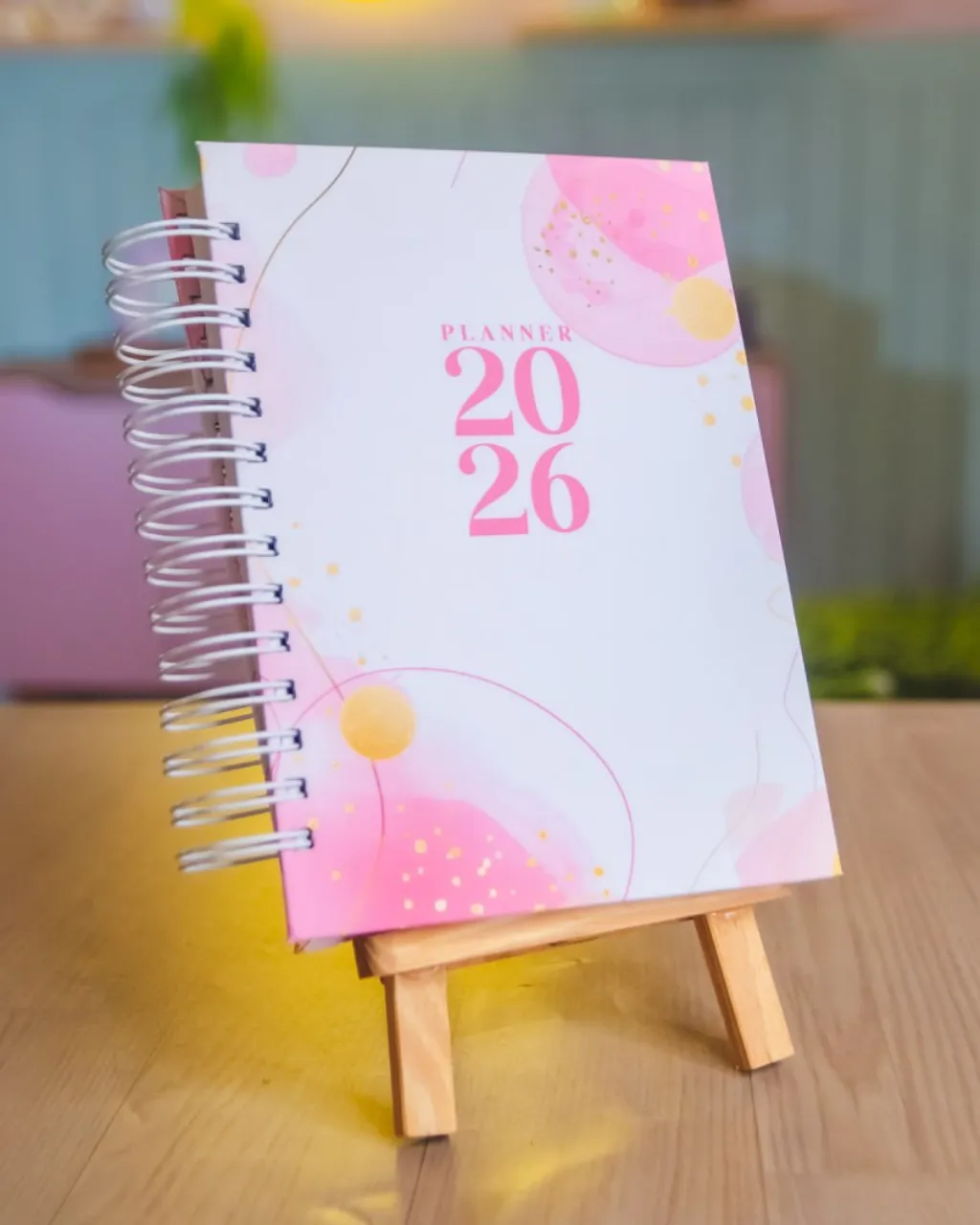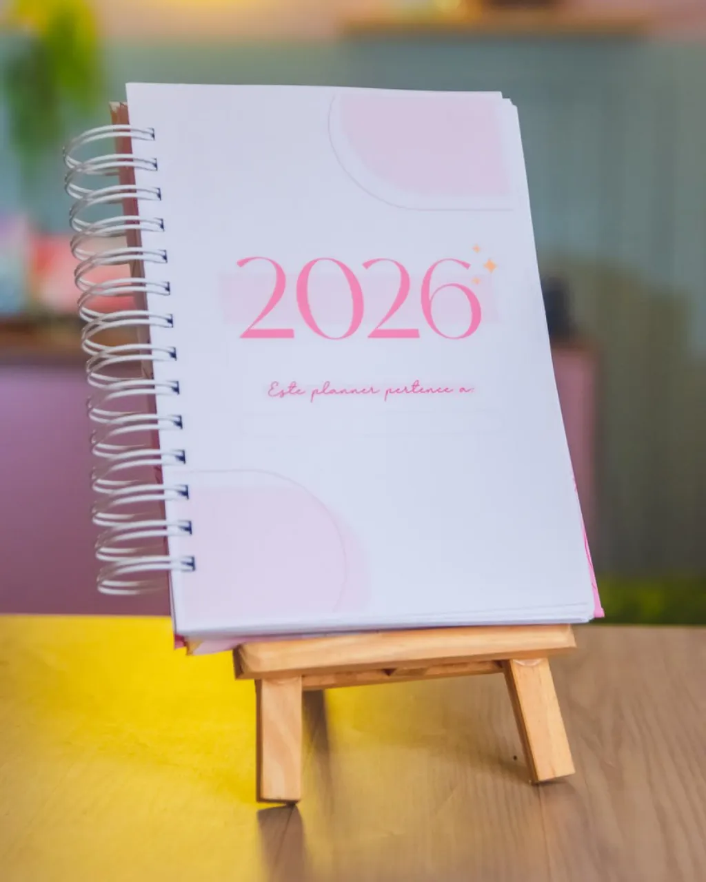 - Planner 2026 datado: pronto para uso, com organização diária, semanal e mensal.