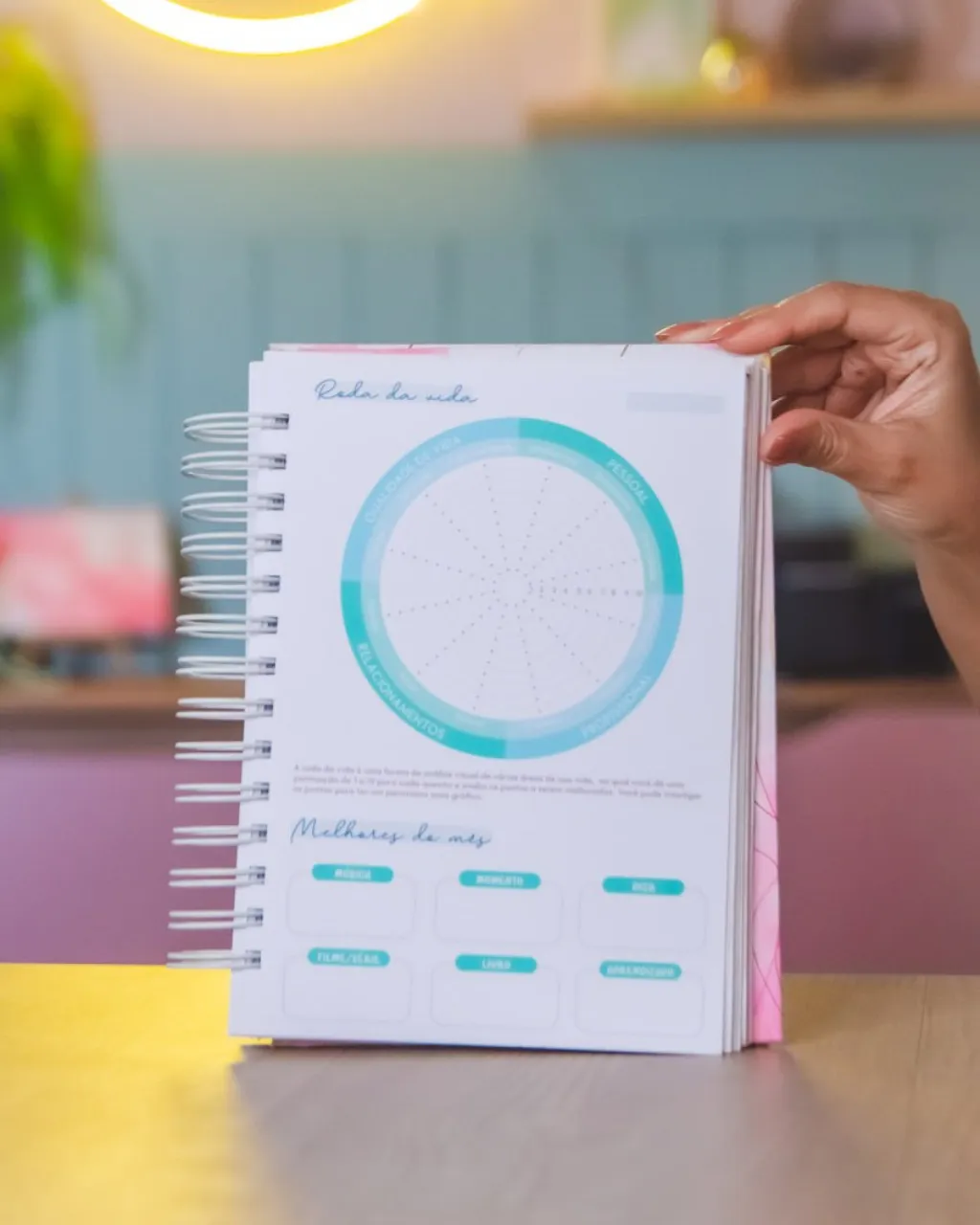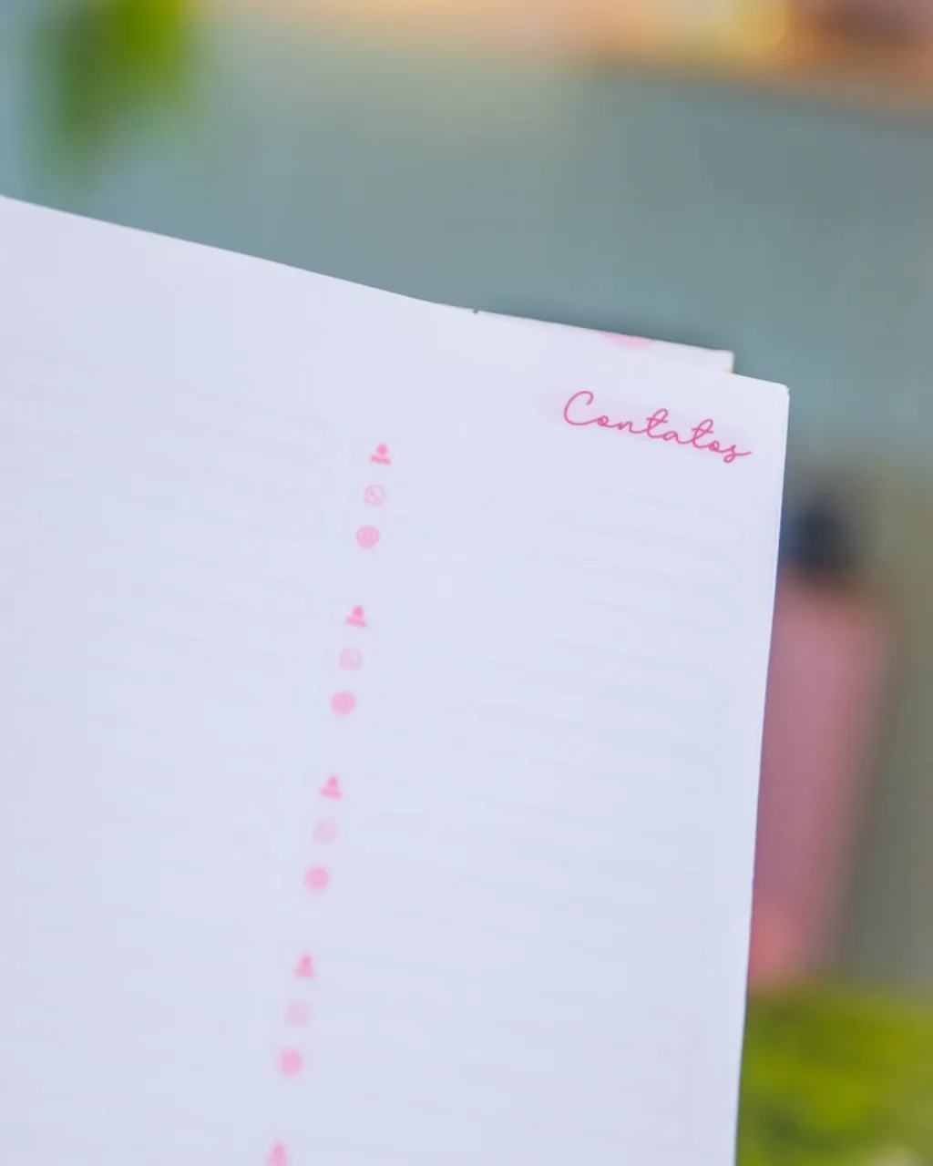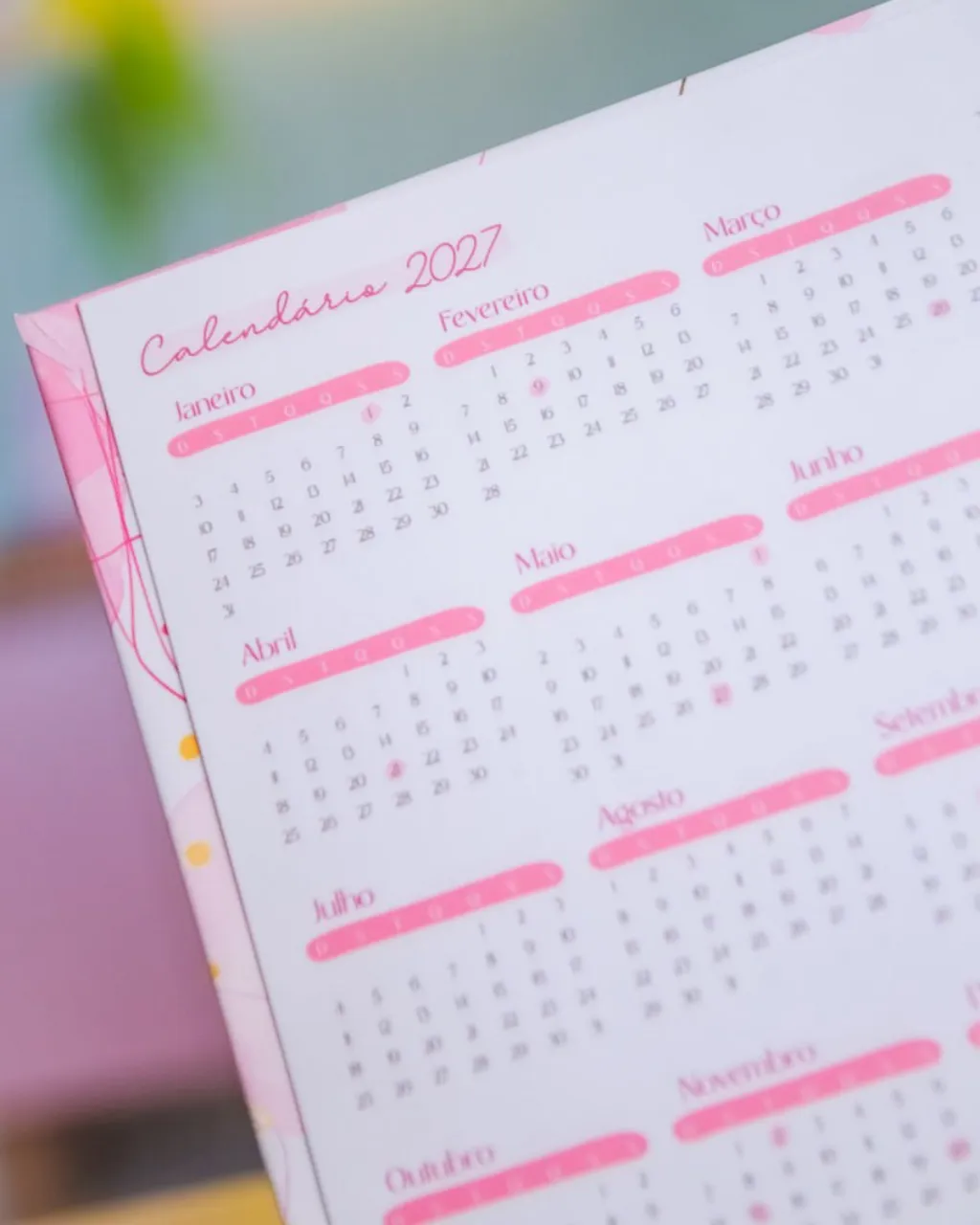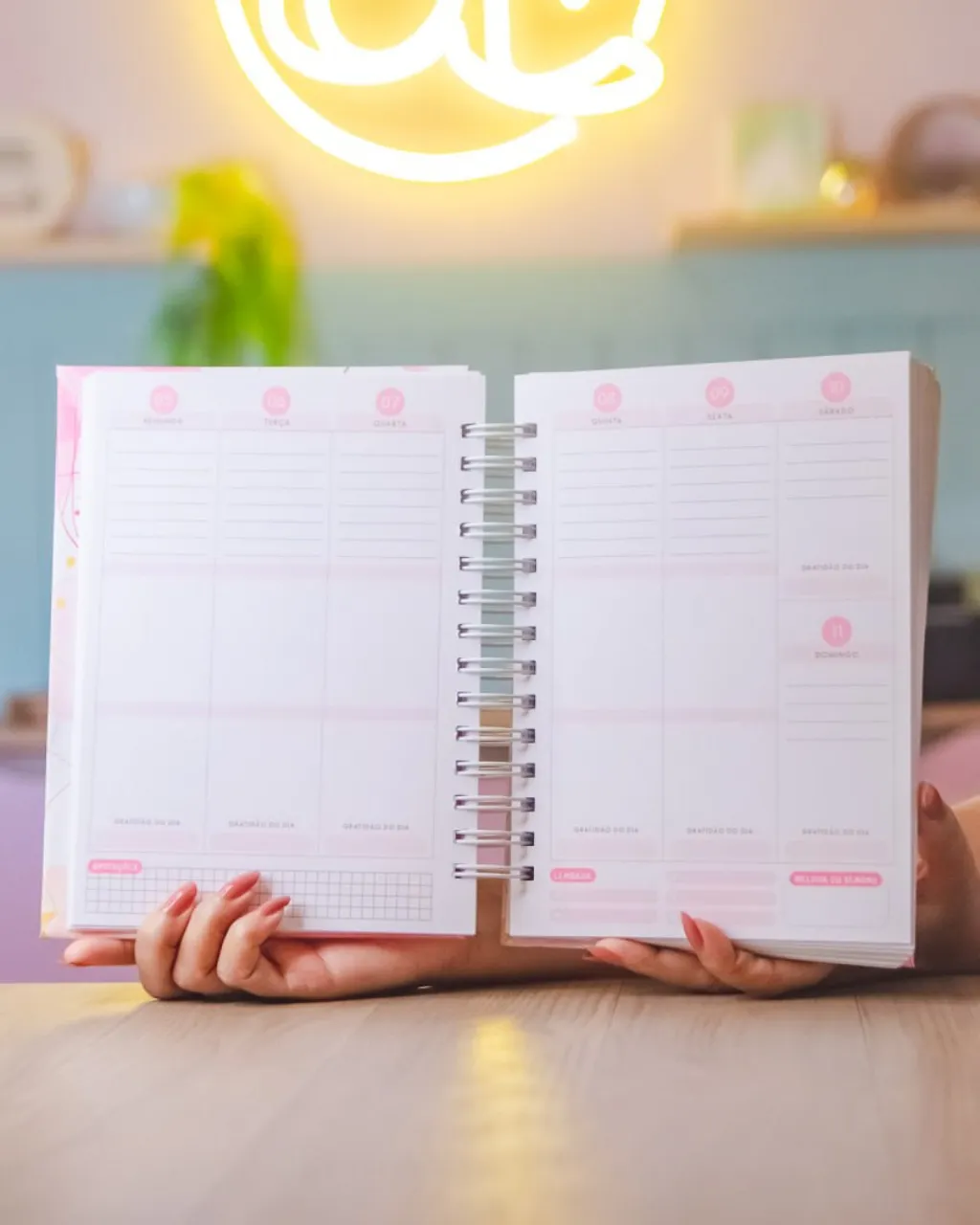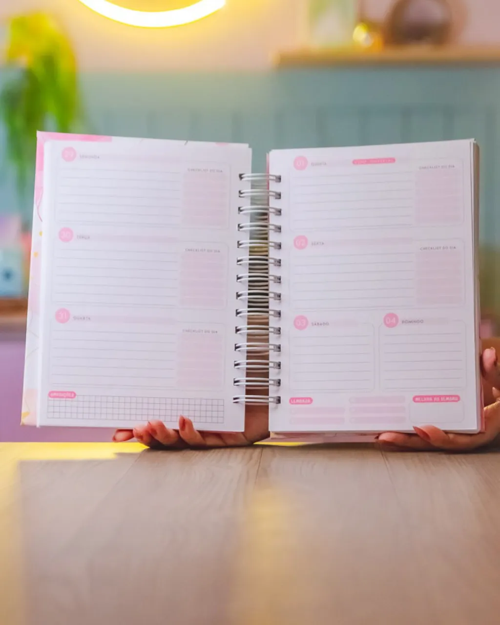 - Planner 2026 datado: pronto para uso, com organização diária, semanal e mensal.