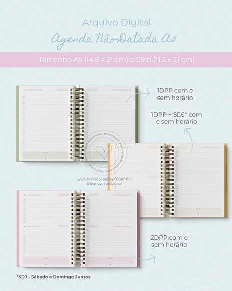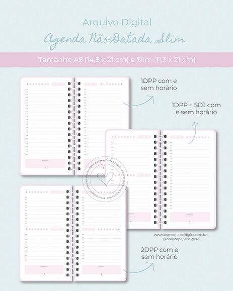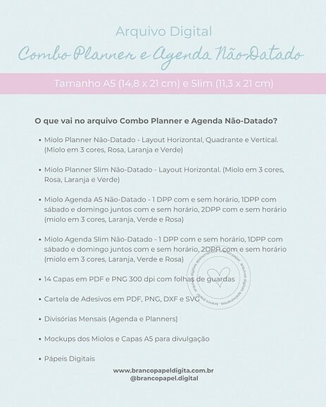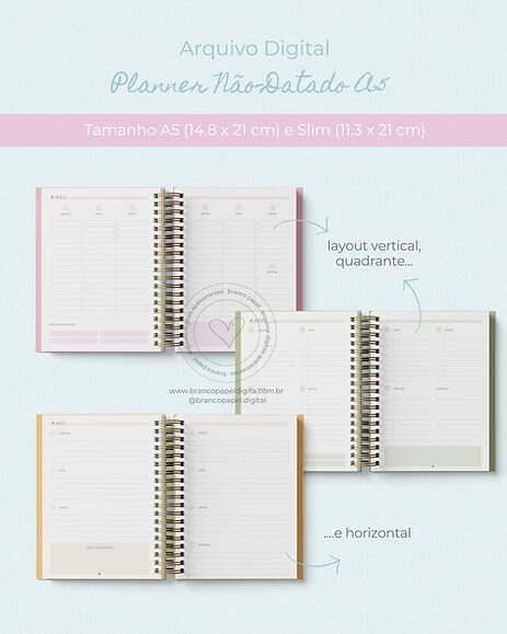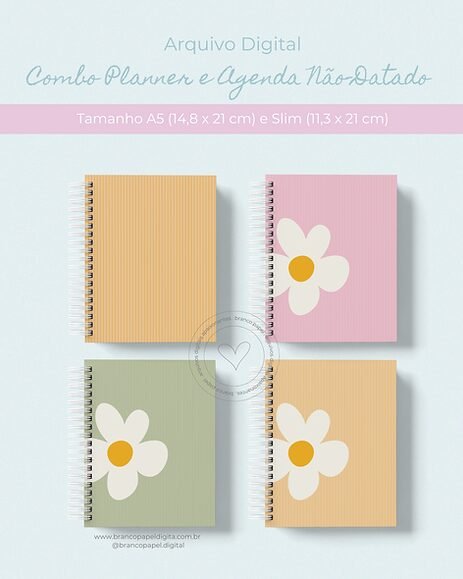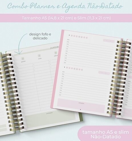 Combo Planner e Agenda Não-Datado – A5 e Slim (Branco Papel)