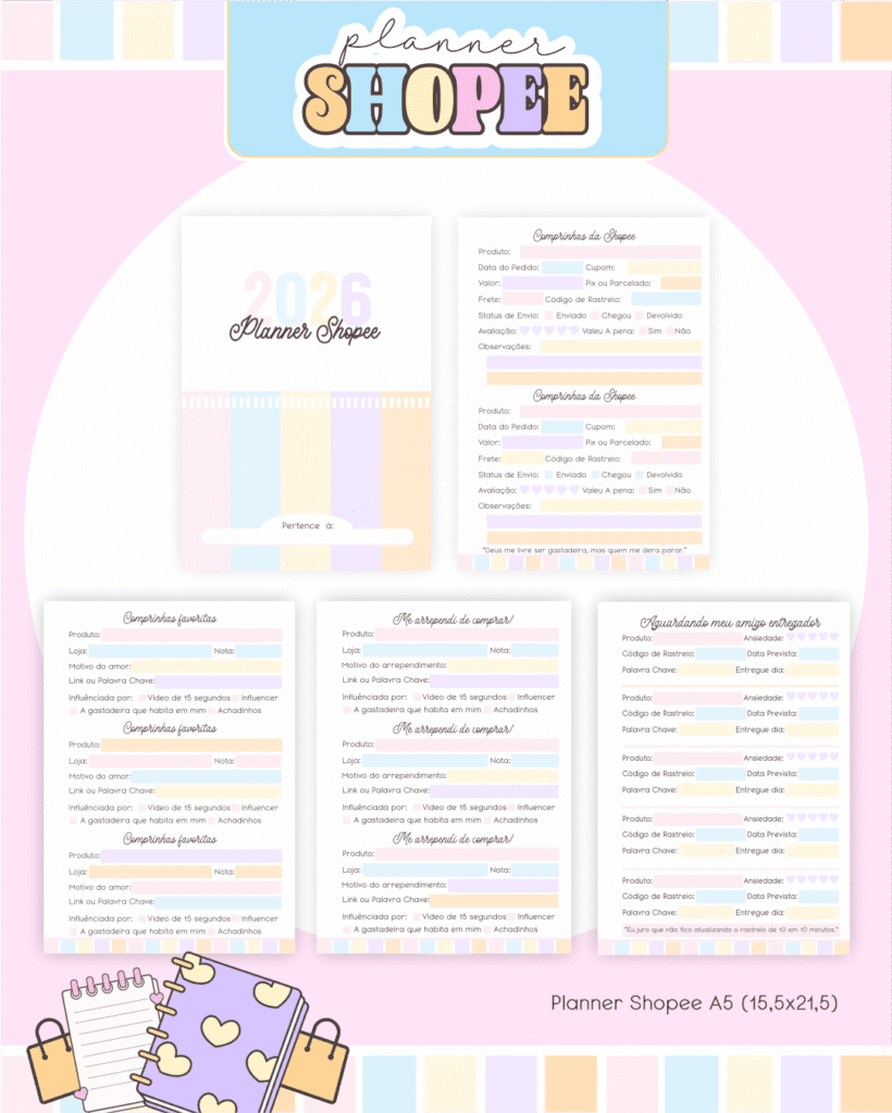 Modelos: 1) SHOPEE MEU CARDIO FAVORITO | 2) SHOPEE CONTROLADA | 3) RAINHA DA SHOPEE | 4) A PAZ QUE EU PRECISO | 5) MEU CARDIO FAVORITO