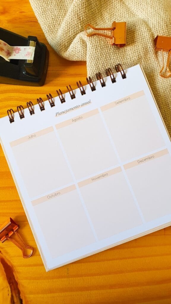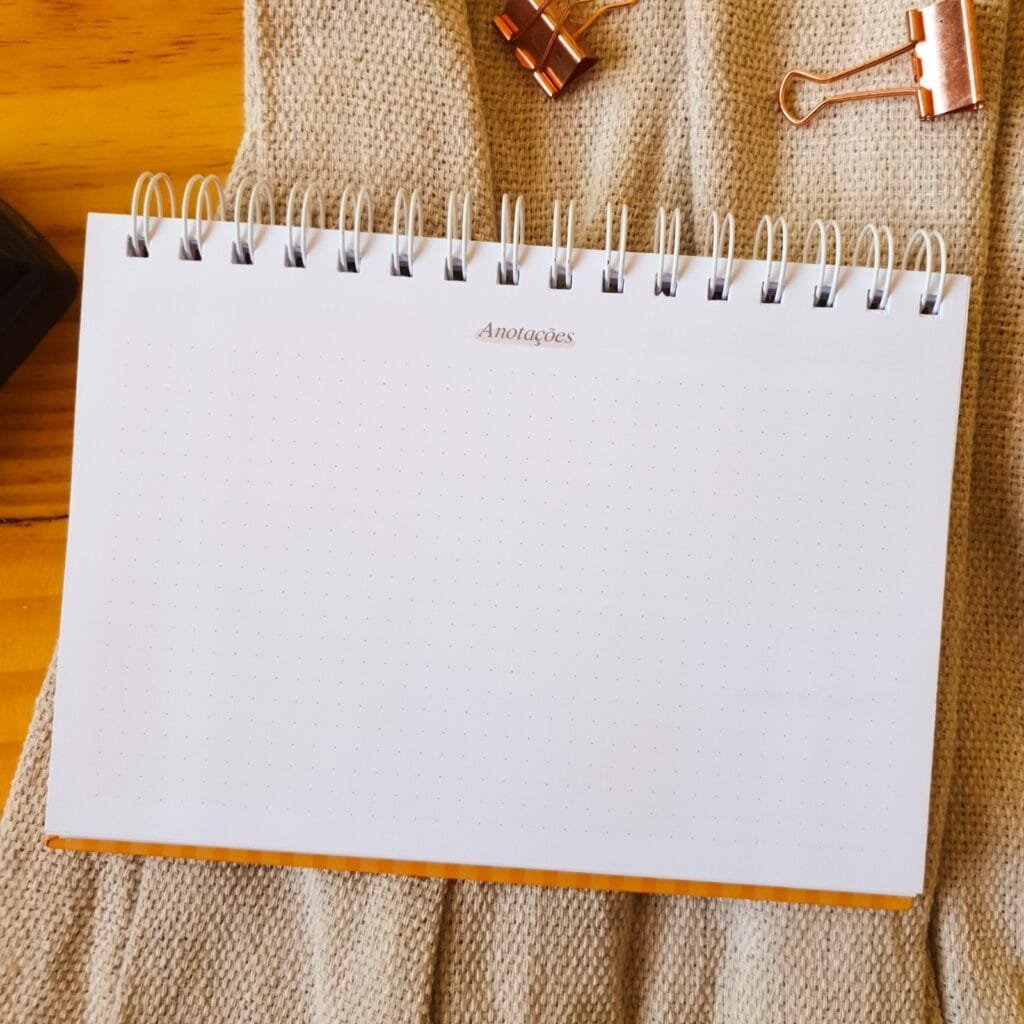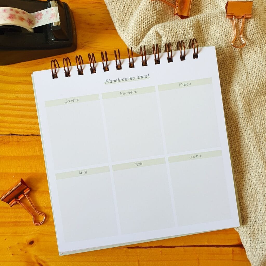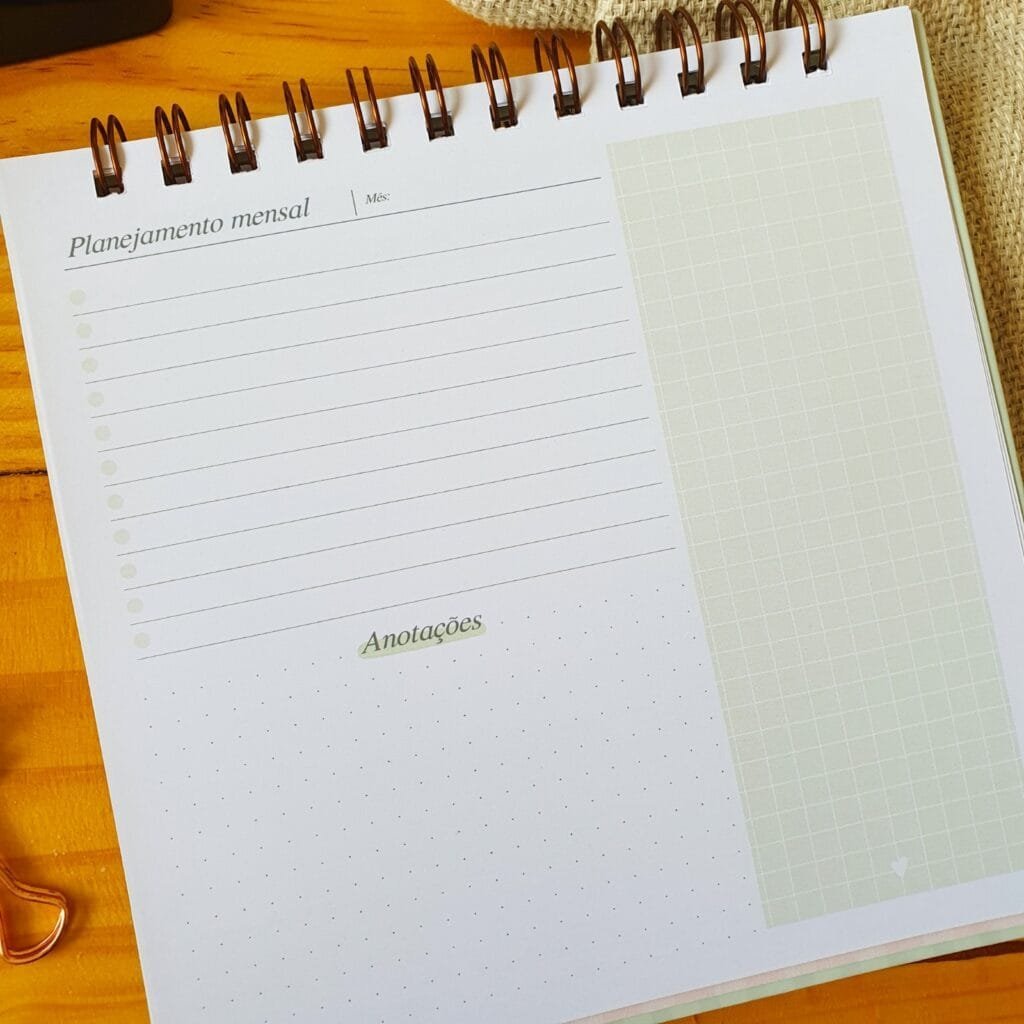 - Páginas de planejamento: planejamento mensal e espaços para anotações