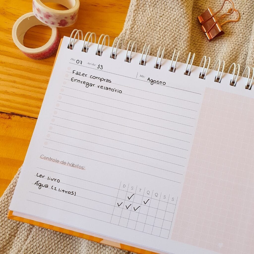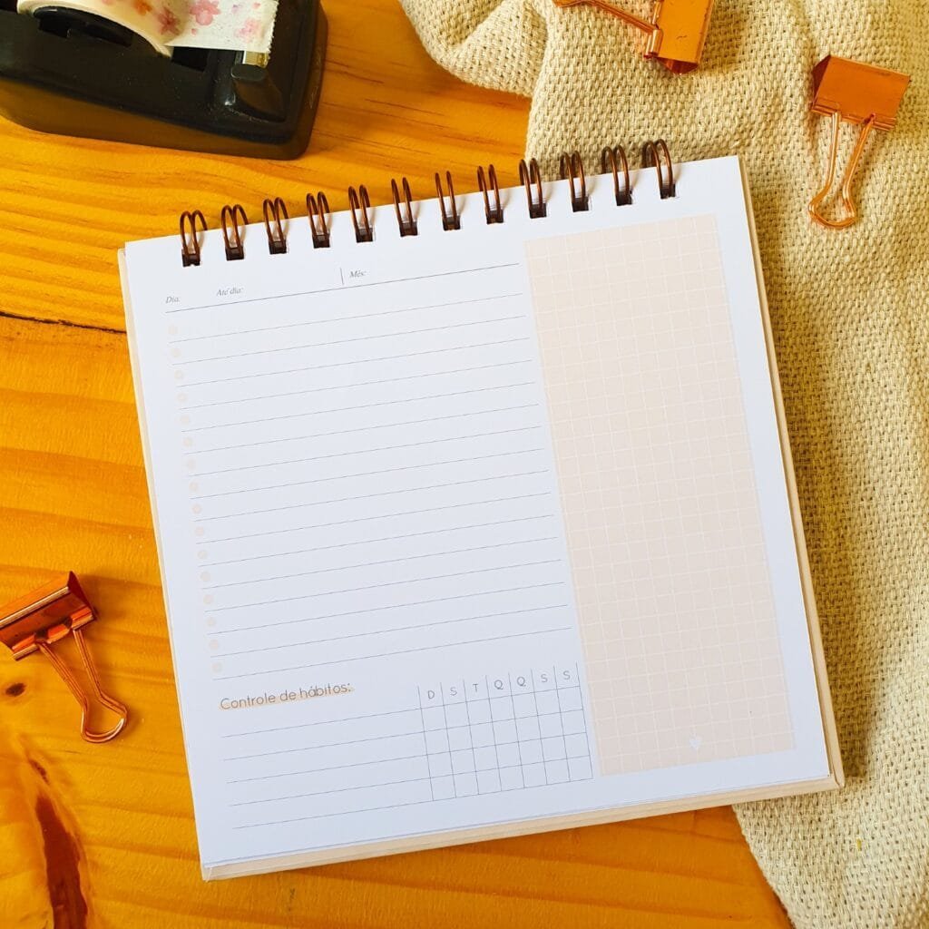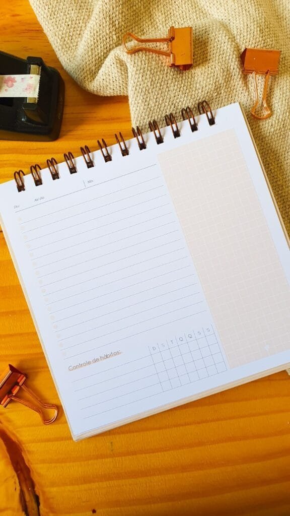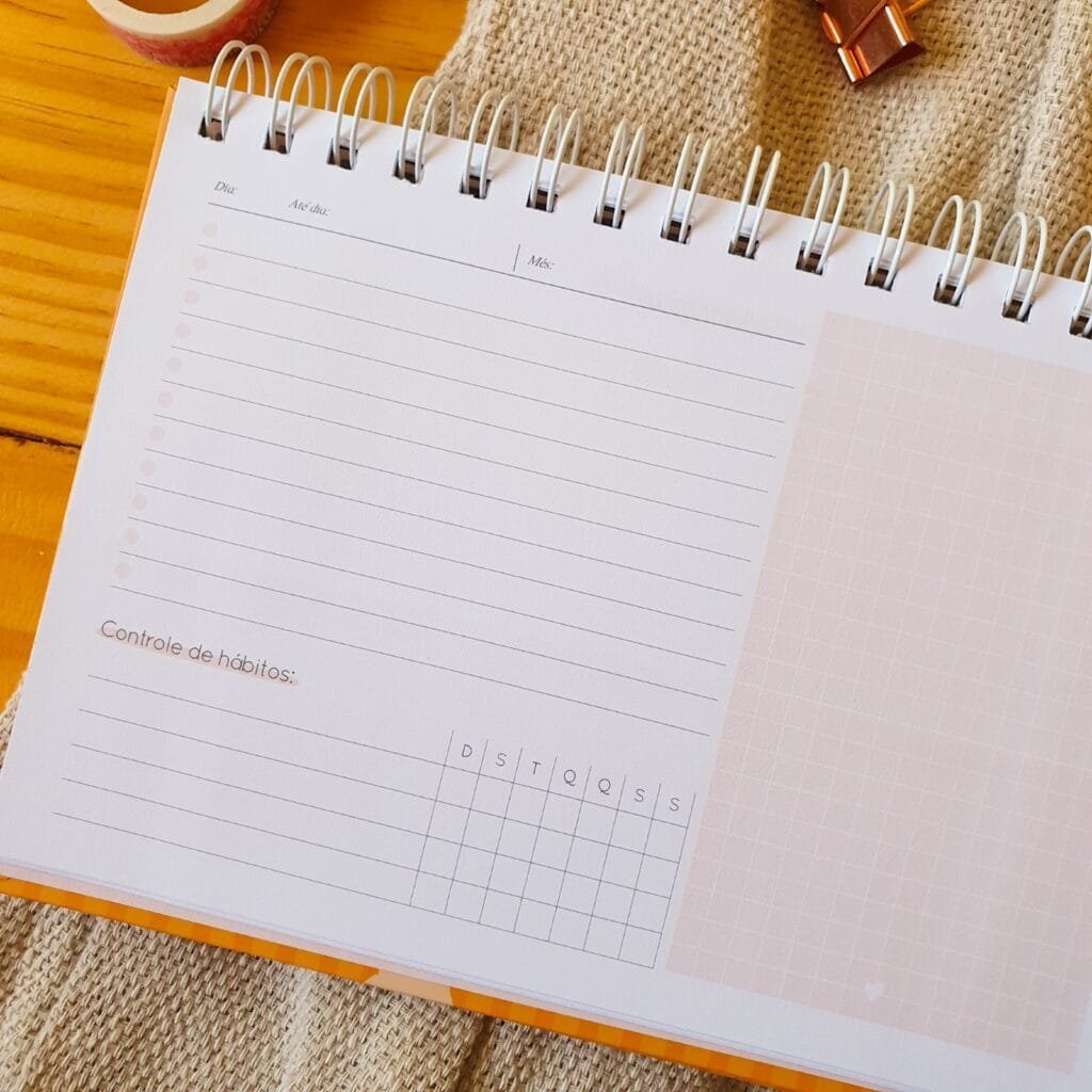 - Páginas de planejamento: planejamento semanal, espaços para anotações e controle de hábitos.