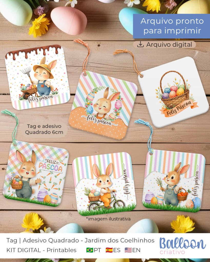 n-Printable – Tag e Adesivo Quadrado – Jardim dos Coelhinhos