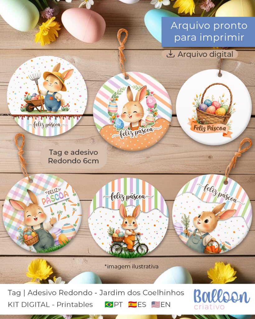 n– Printable – Tag e Adesivo Redondo – Jardim dos Coelhinhos