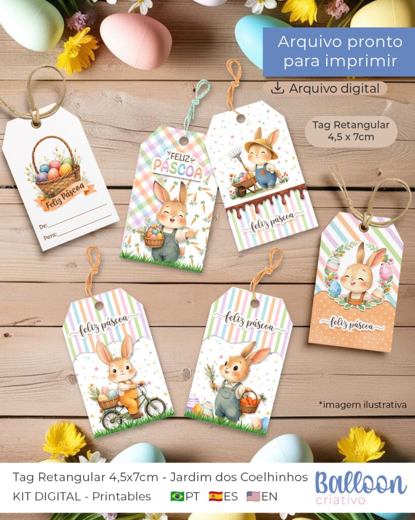n– Printable – Tag Retangular 4,5x7cm – Jardim dos Coelhinhos