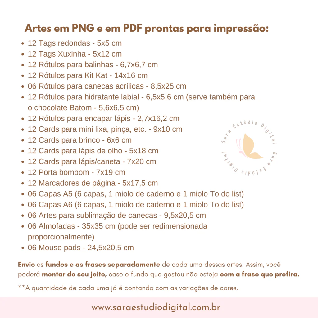 Artes em PNG e em PDF prontas para impressão: