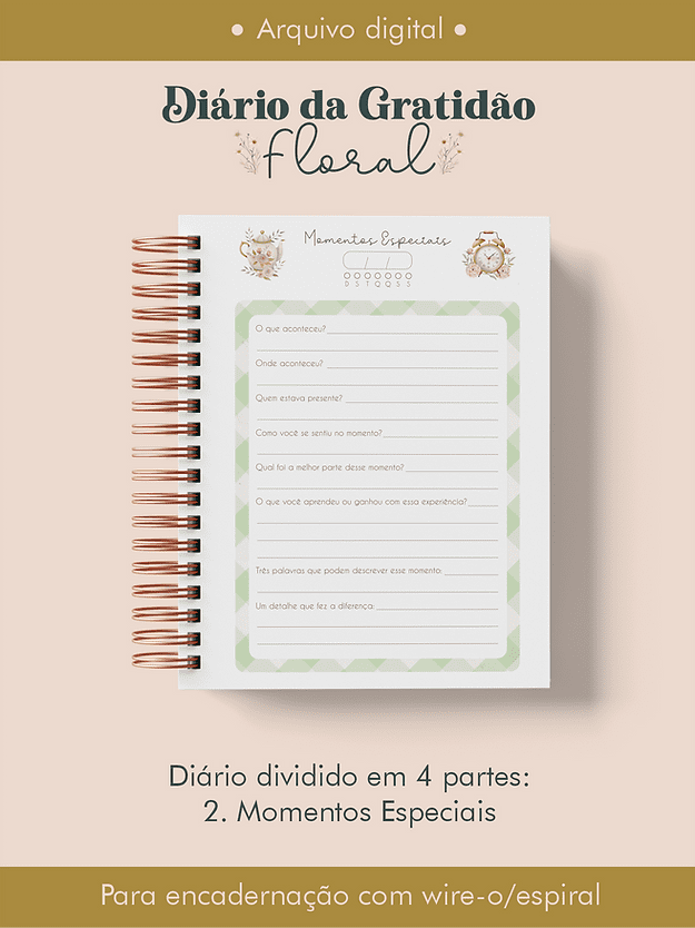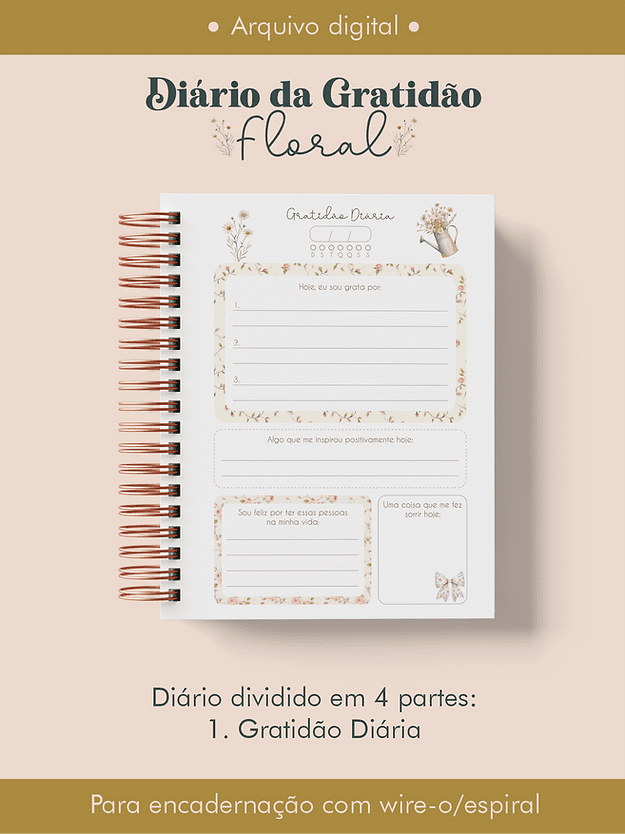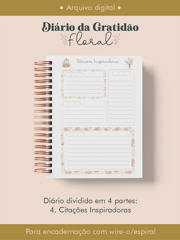Diário da Gratidão Floral Wire-o (Perfeito Miolo)