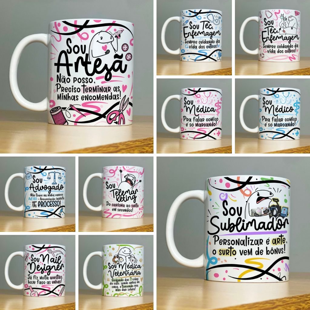 50 Artes para canecas em PNG ALTA QUALIDADE – 15 PROFISSÕES–  (masculino, feminino, com e sem florks)