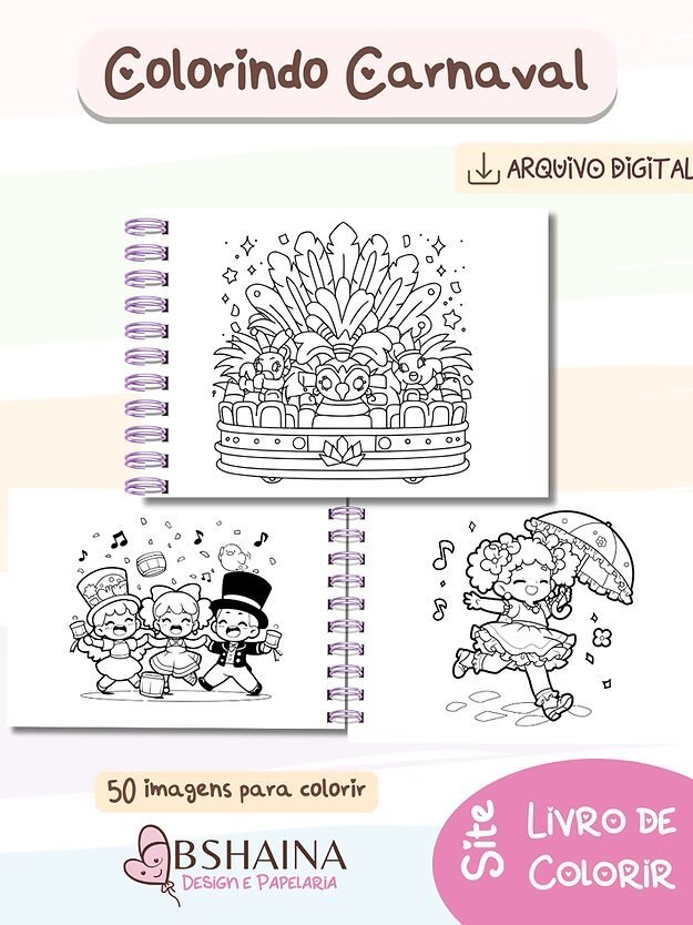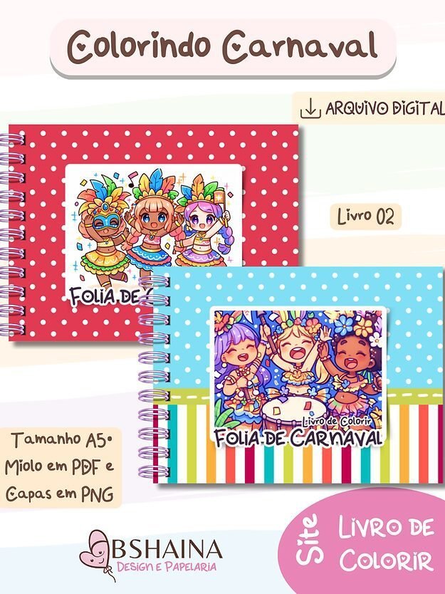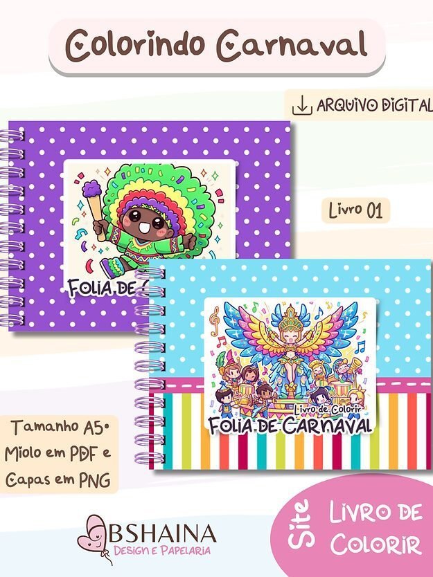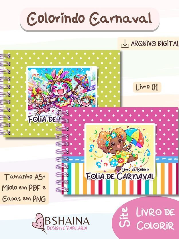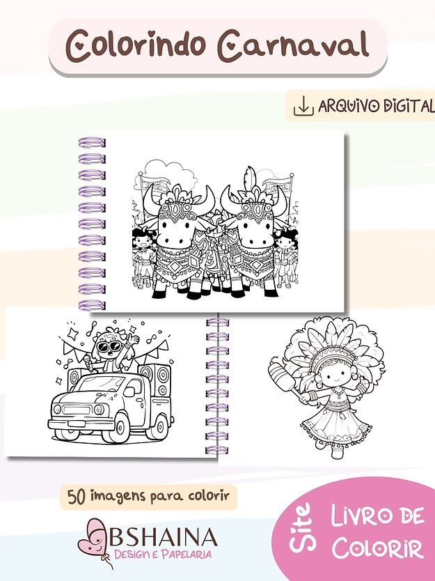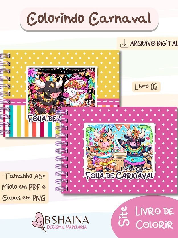 n  2 livros de colorir, cada um representando as tradições carnavalescas de diferentes partes do Brasil