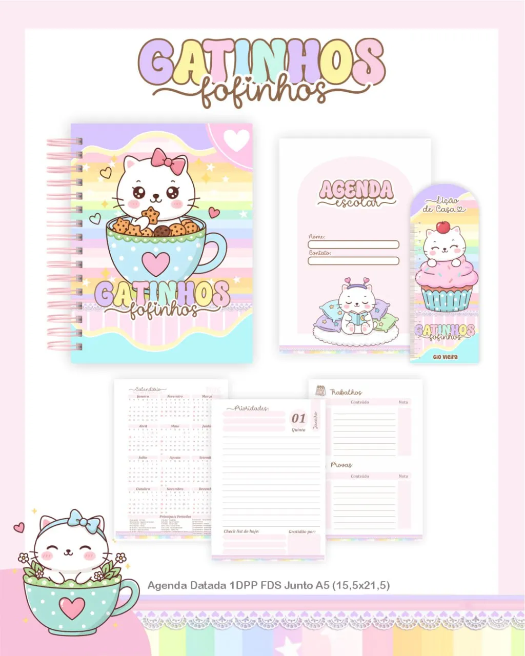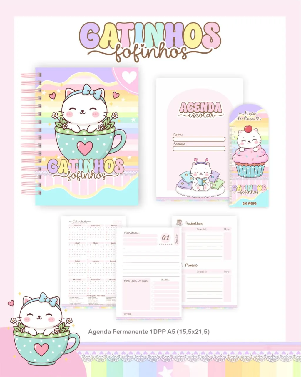 Deixe sua volta às aulas ainda mais fofa e cheia de estilo com este arquivo exclusivo inspirado em gatinhos! Criado por Pamela Vieira, esse material traz toda a delicadeza e o charme dos felinos, transformando seus cadernos, planners e materiais escolares em peças únicas e irresistíveis.