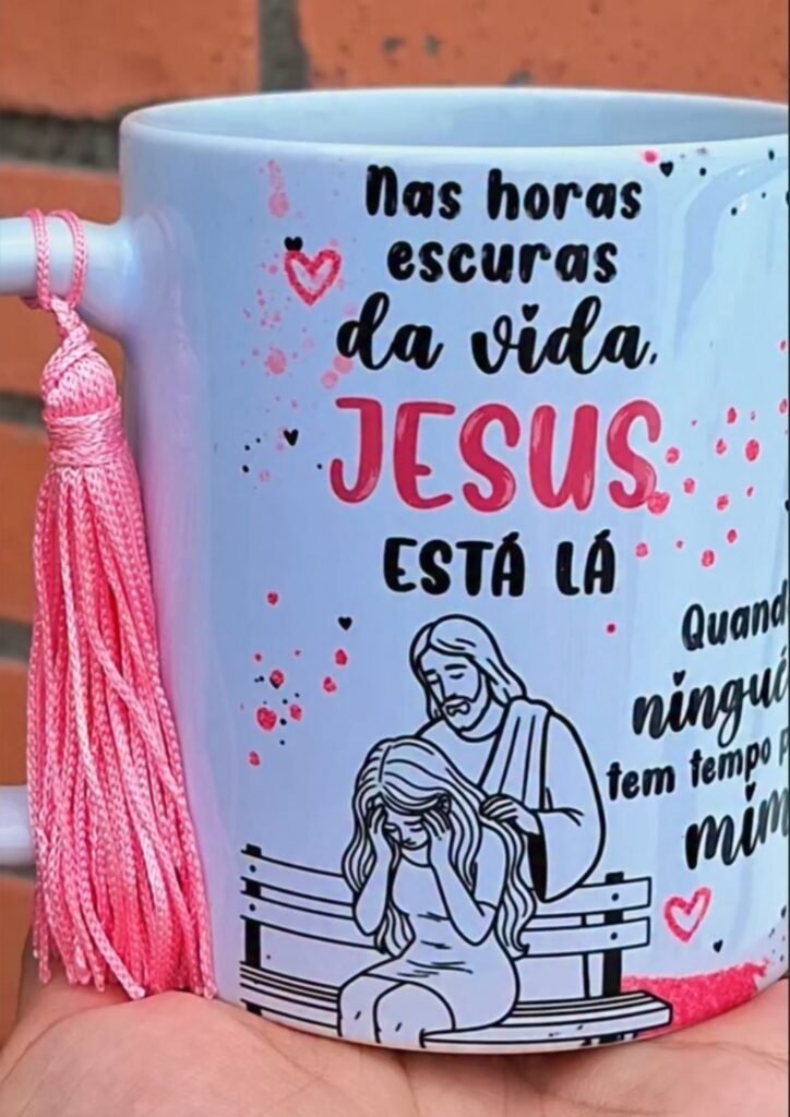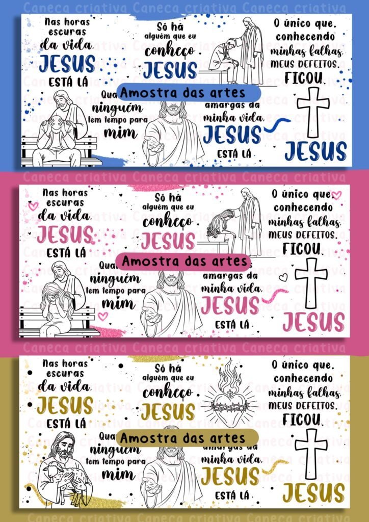Jesus tá lá 03 versões – Unisex, Feminina, Masculina (Dourada, Rosa, Azul) – Arte Avulsa Caneca