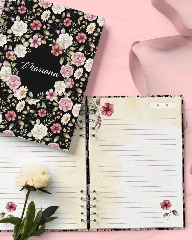 Arquivo Kit 5 Capas e 5 Miolos Pautado Coleção Flores e Cores