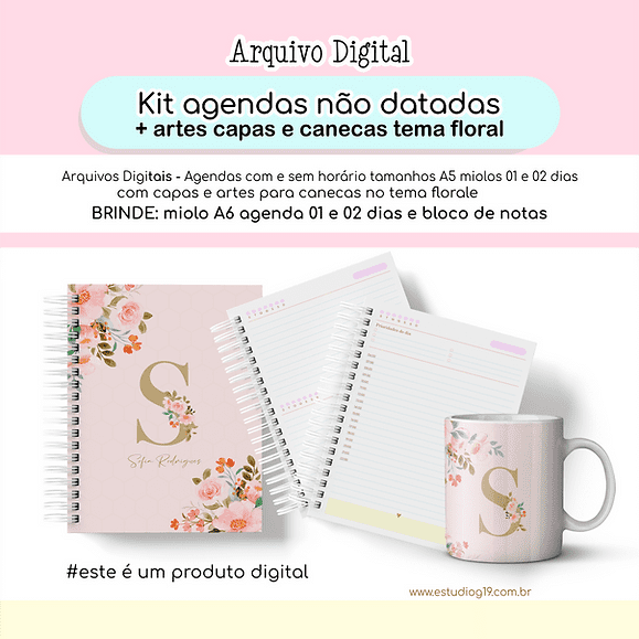 Kit Agendas Não Datadas Alfabeto floral + Brindes (Estúdio G19)
