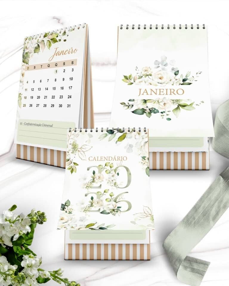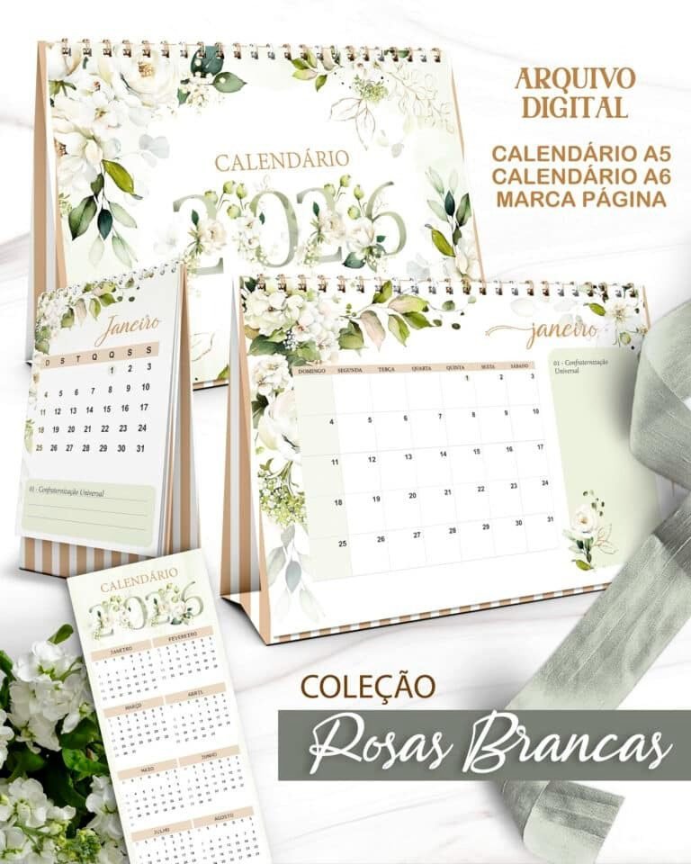 Arquivo Kit Calendários de Mesa 2026 A5 A6 e Calendário Marca Página Coleção Rosas Brancas