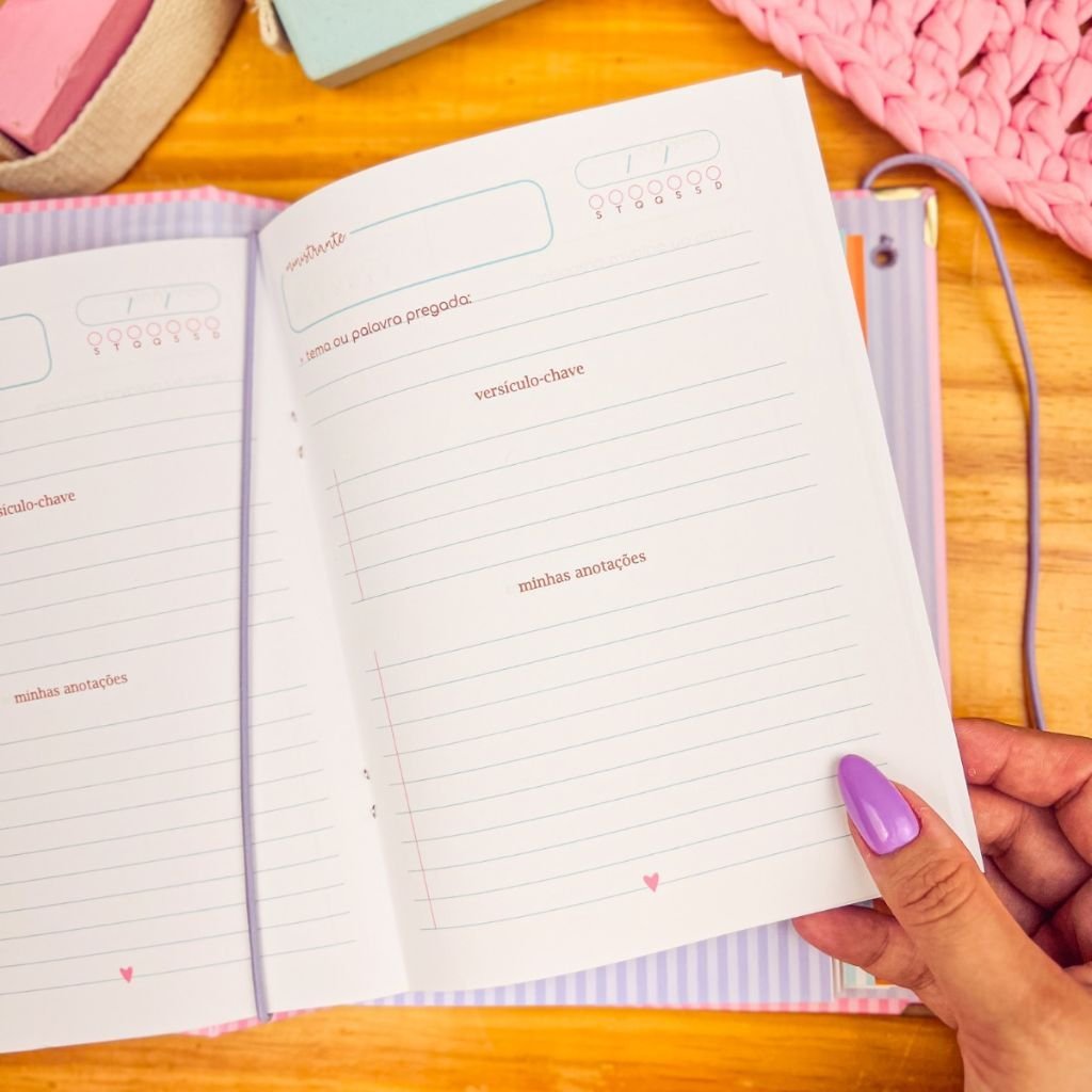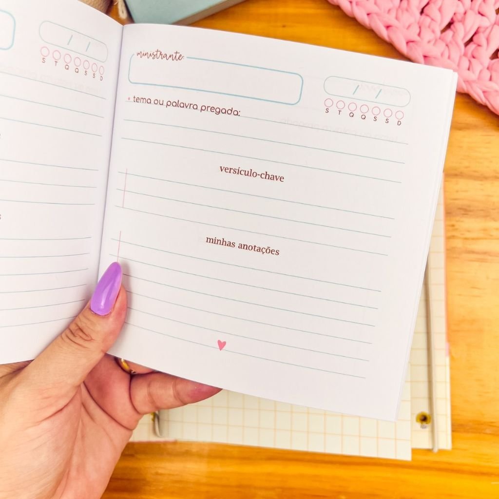 - Caderno de ministração, espaço para anotações durante os cultos