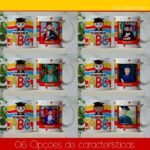 12 Bonequinhos ilustradas (06 Roupa azul, 06 Roupa Preta)
