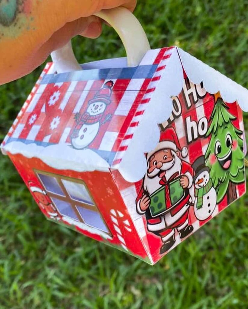 1 arte para Caixa Casinha Mini Panetone 16×8,5x9cm em PNG, PDF e com molde em DXF e SVG
