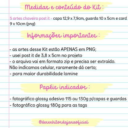 Kit Digital Chaveiro Post it (Desenhitos da Jana)