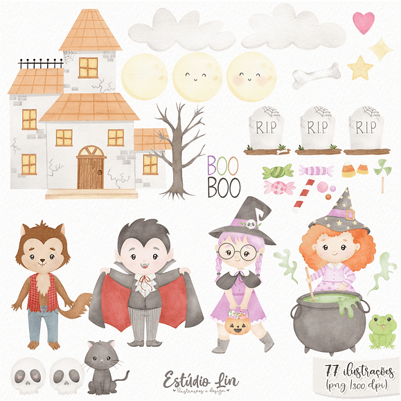 ‘- 77 ilustrações em PNG (fundo transparente e em alta resolução – 300 dpi)