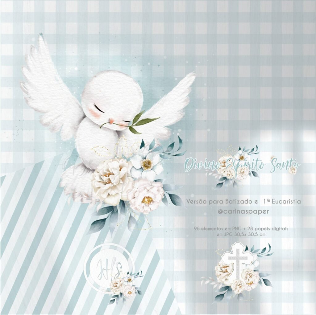 Kit Digital Divino Espírito Santo 2 (Versão para Batizado e 1ª Eucaristia) – Santinhos