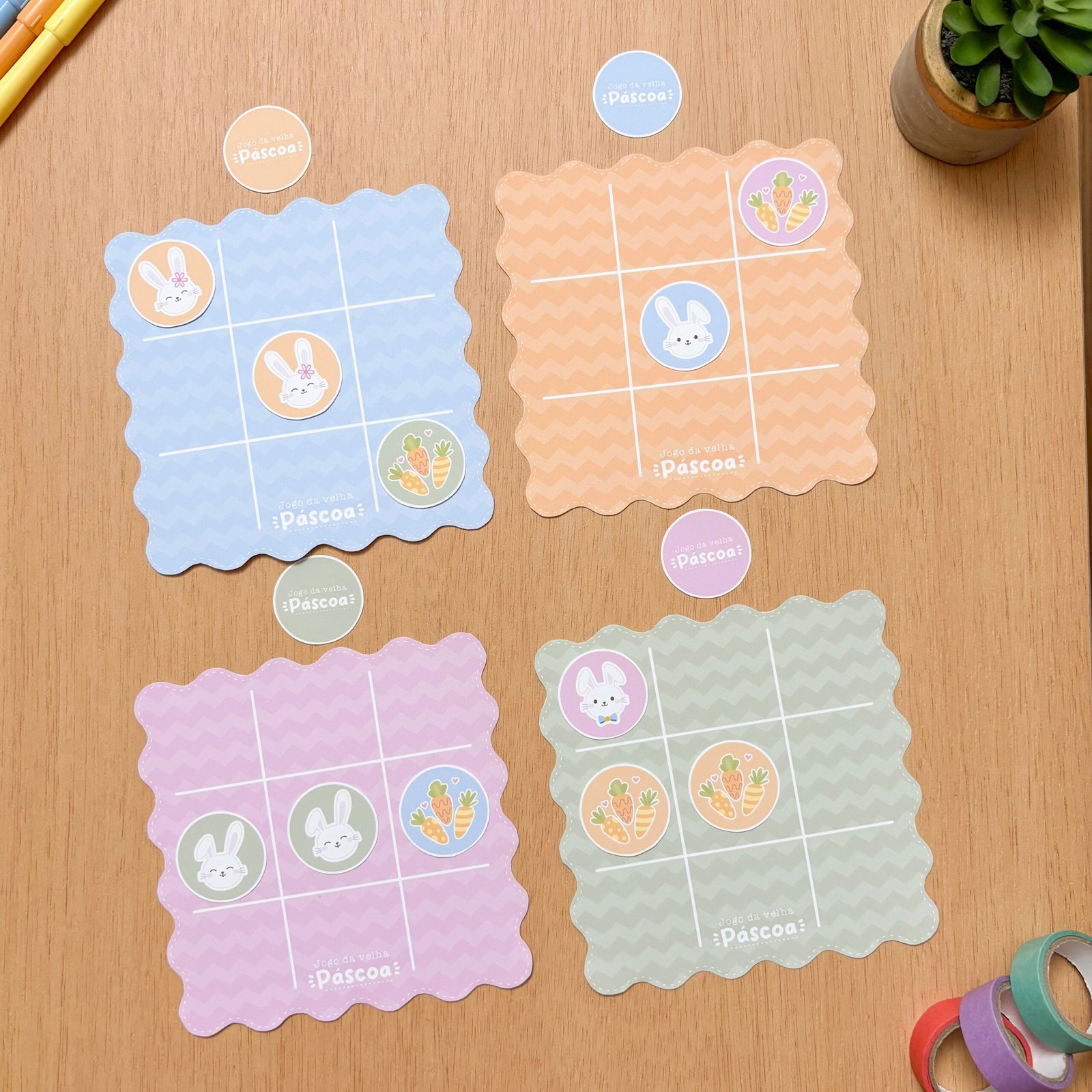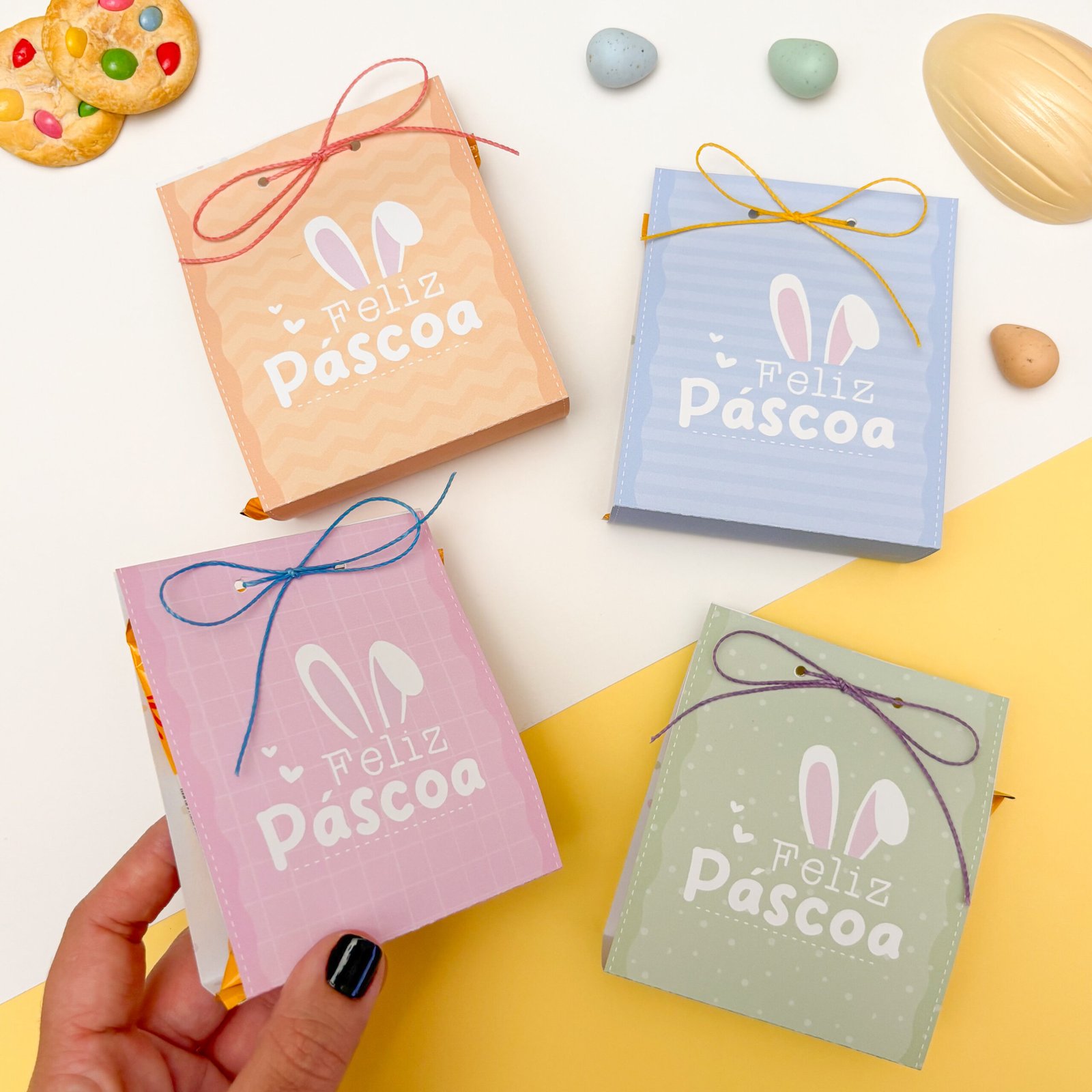 O Kit Digital Lembrancinhas de Páscoa reúne diversos modelos criativos para produzir mimos personalizados de forma fácil e profissional. O pack inclui caixas em formato de coelhinho, cards para chocolate, jogo da velha temático, porta doces e solapas para sacolas, ideais para montar lembrancinhas encantadoras de Páscoa.