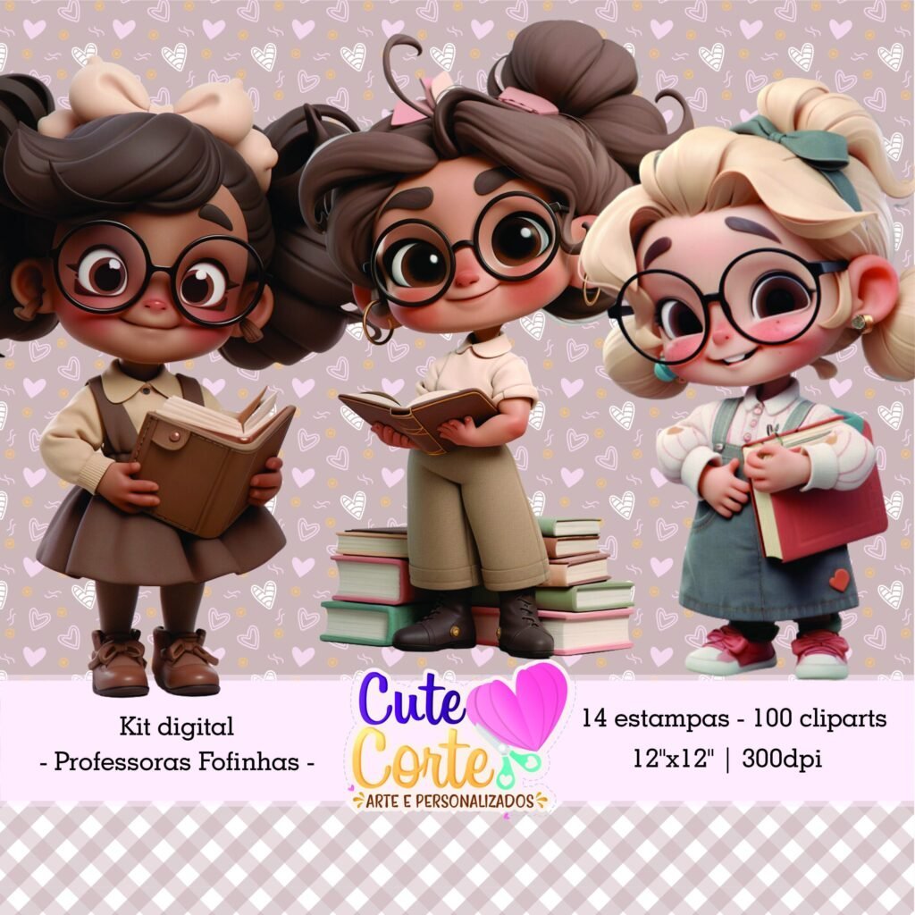 Kit Digital – Professoras Fofinhas (14 Papeis Digitais + 100 Cliparts) – Cute Corte