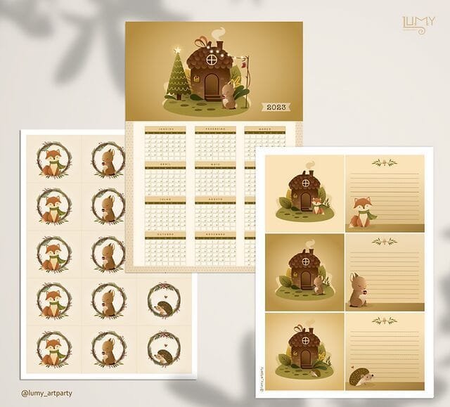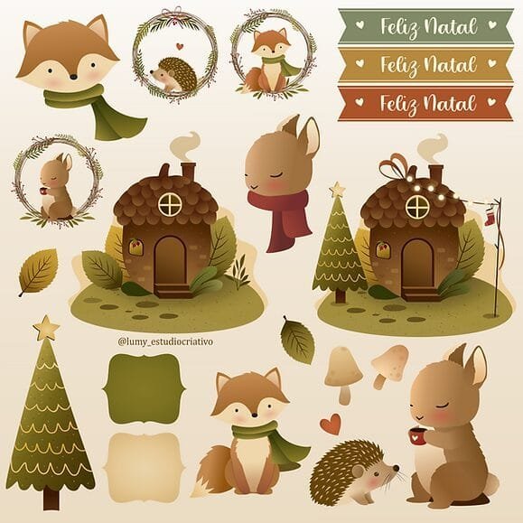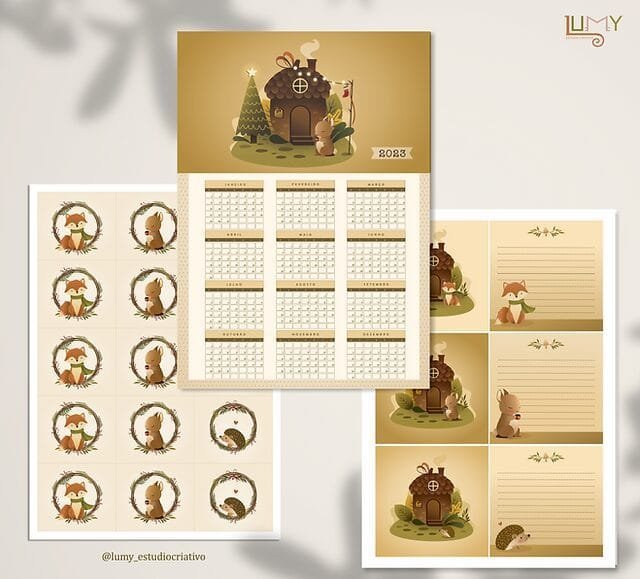 Esse kit digital tem arquivos já montadinhos na folha A4, mas também tem ilustrações soltas para você fazer suas composições.