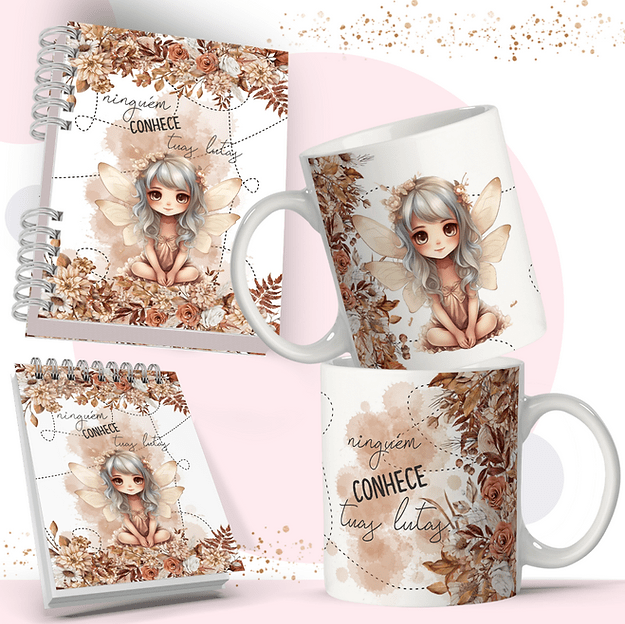 Kit Fadas Aparecida para Agenda | Caneca | Bloquinhos