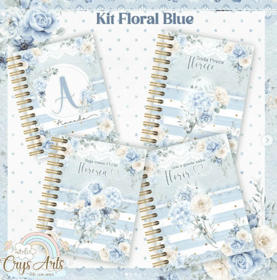 Kit Floral Blue Alfabeto – Bloco | Caderno | Capas (Clube da Crys)