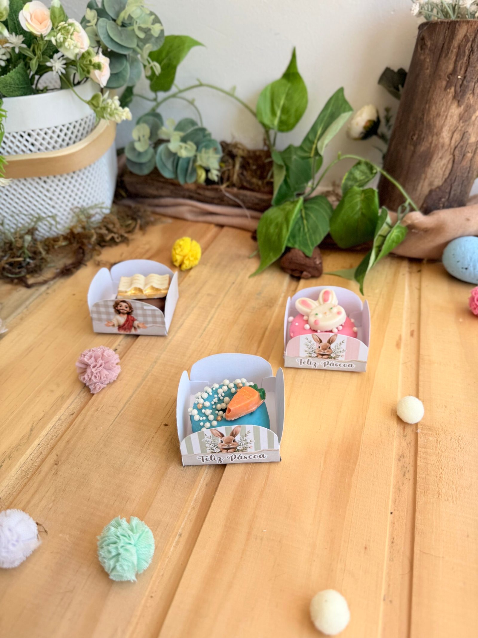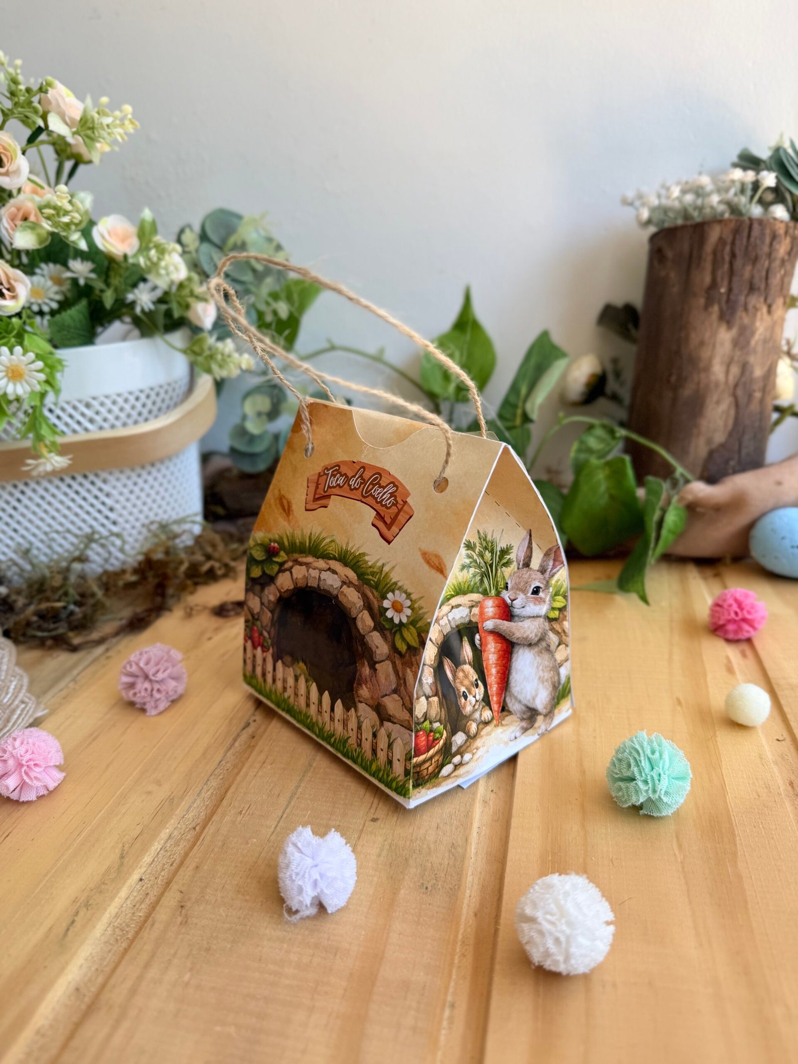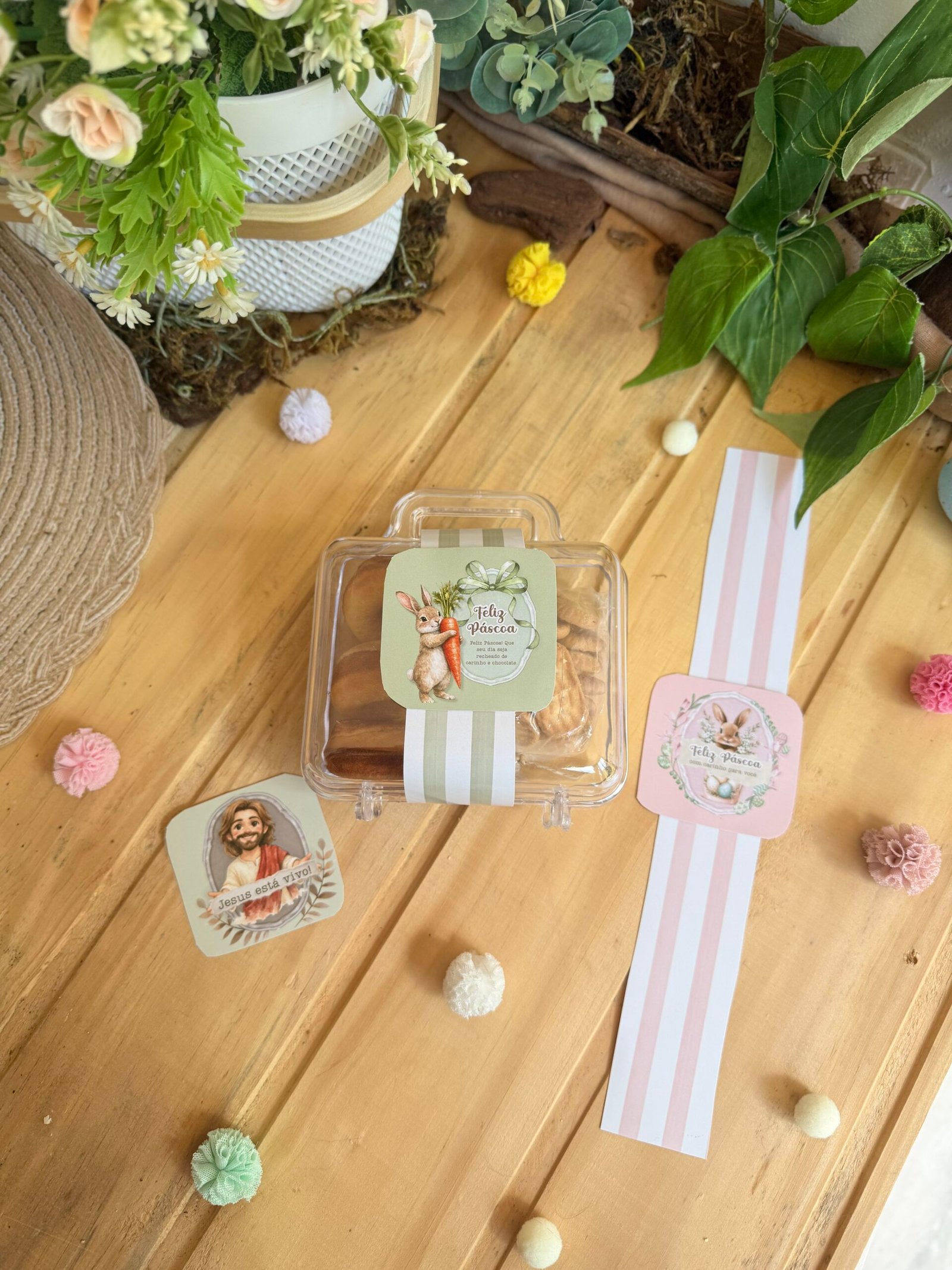 Transforme a sua Páscoa com um kit completo de embalagens e lembrancinhas personalizadas, prontas para editar e imprimir.