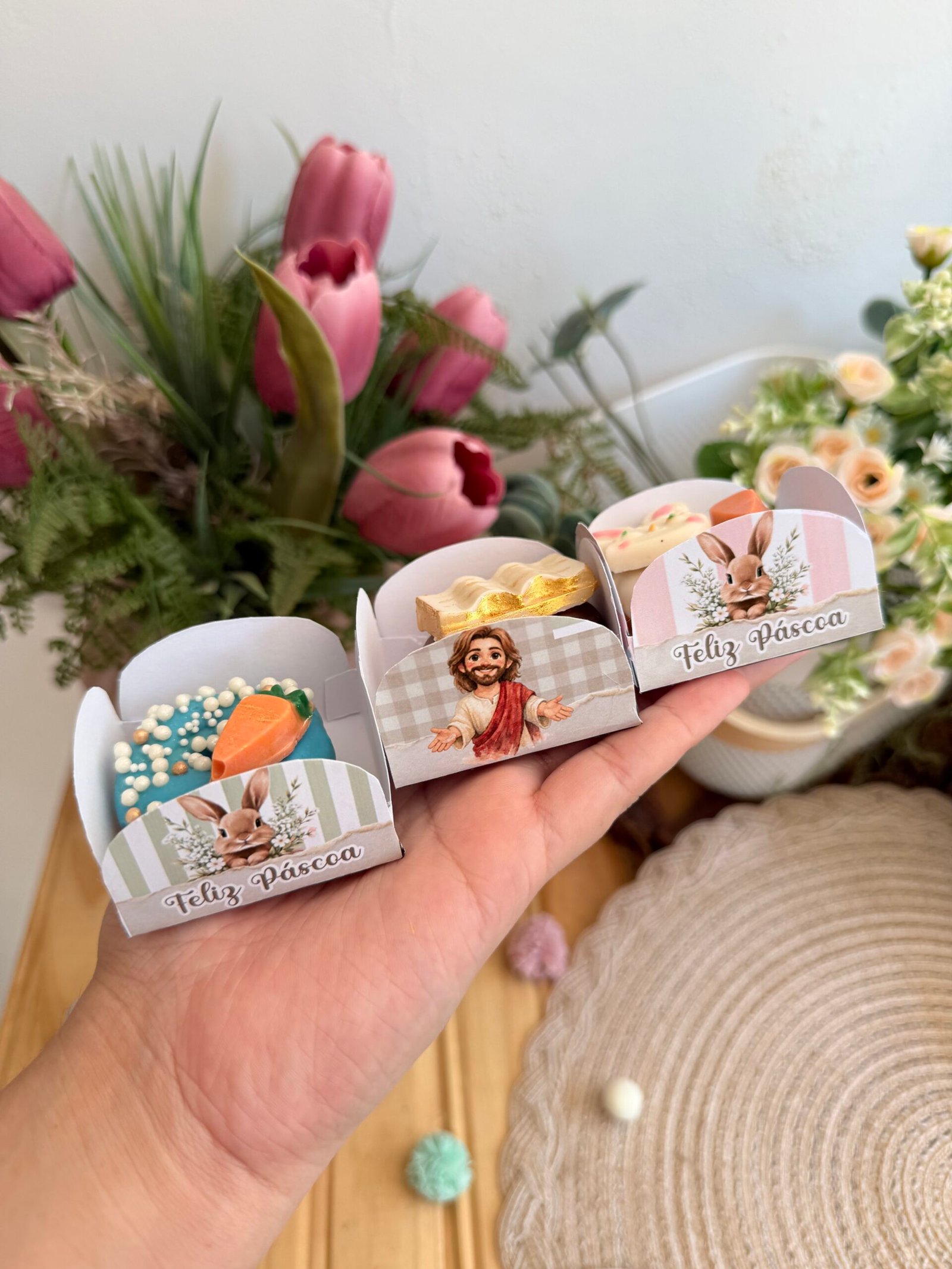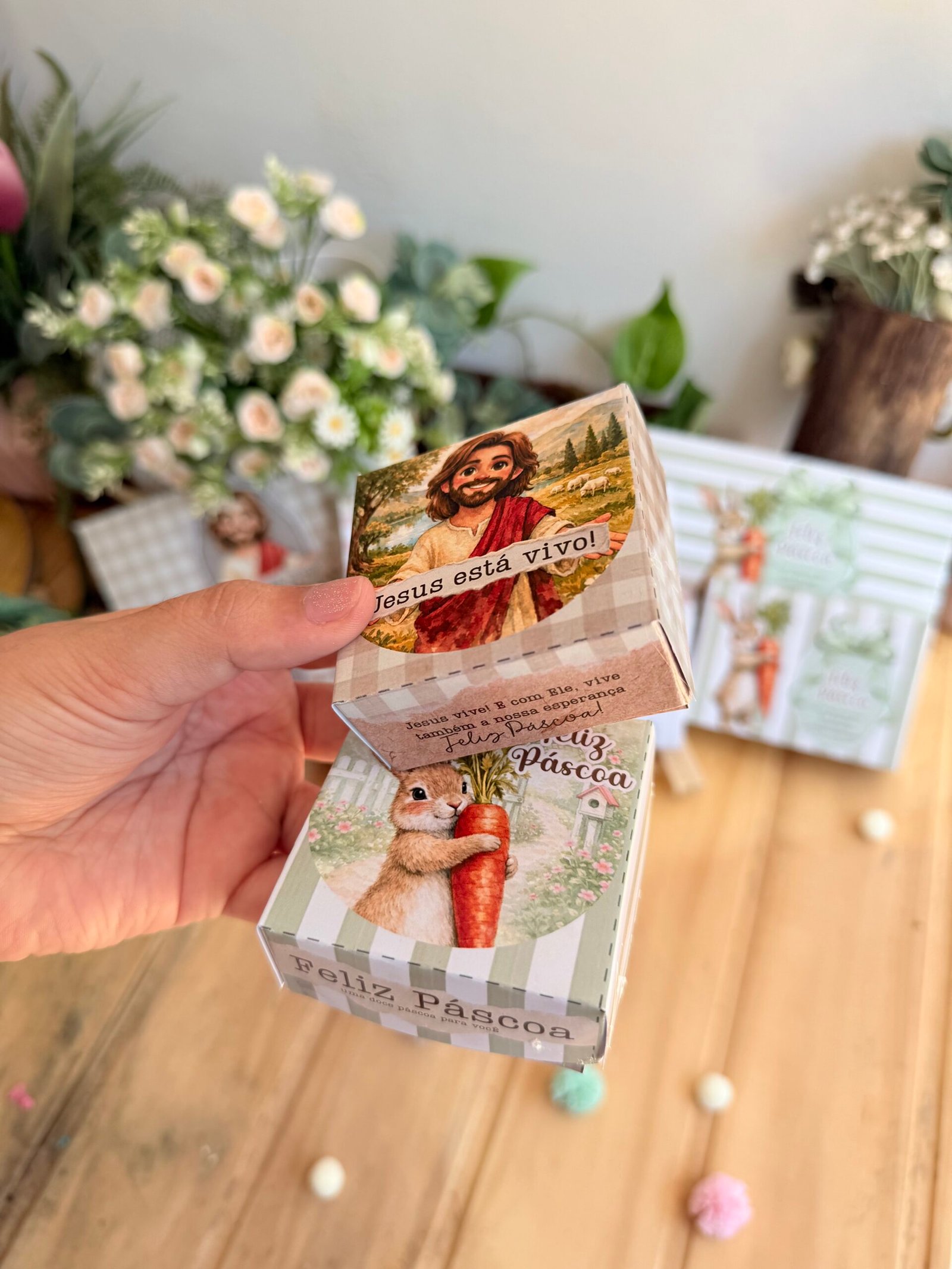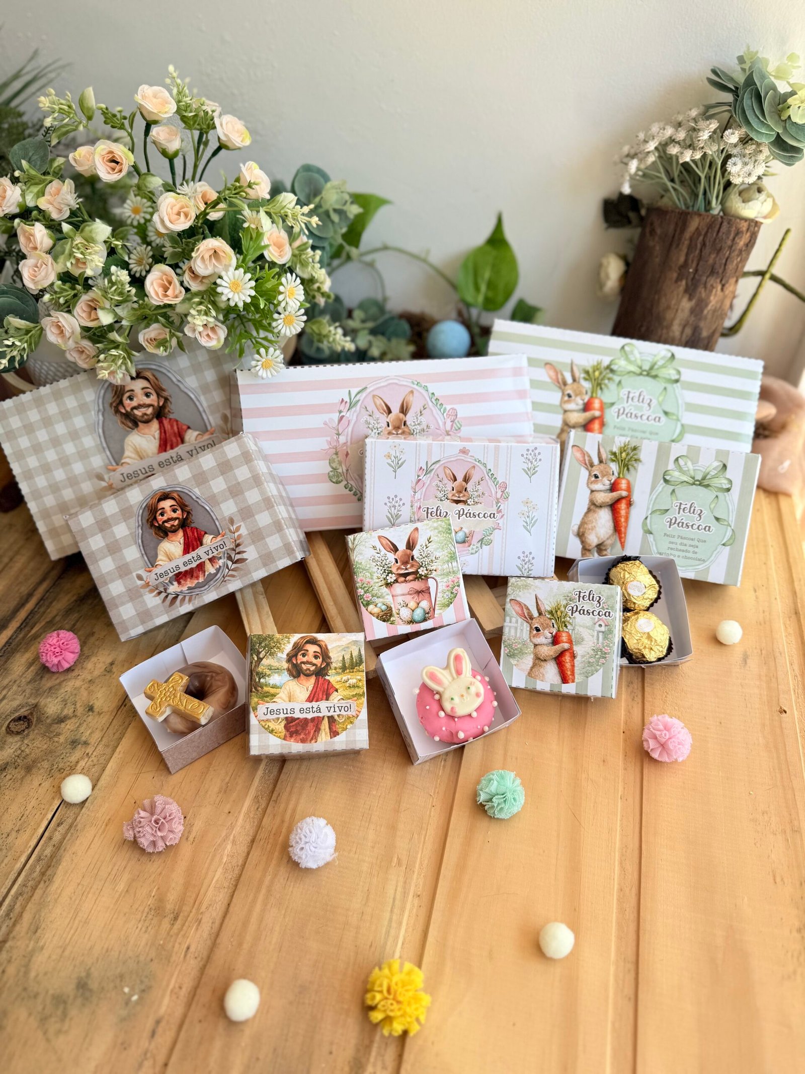 Este Kit Páscoa Baixe e Imprima inclui diversos modelos de caixas, tags, cartões e embalagens delicadas com tema de Páscoa, perfeitas para montar kits de chocolate, lembrancinhas e presentes personalizados.